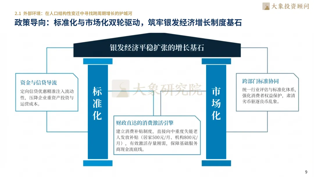 聚焦银发经济时代机遇,共筑“享老”生态与价值增长新基石。大象投顾深刻洞察人口结构变迁的长期趋势,以专业研究解码银发经济的商业内核,以资本视野链接“夕阳红”下的“朝阳产业”。银发经济,正从民生保障的基础工程,跃升为驱动内需与消费升级的核心增长极。我们愿与远见者并肩,共同开拓这一跨越周期的黄金赛道,提供贯穿战略、资本与资源的系统性解决方案。