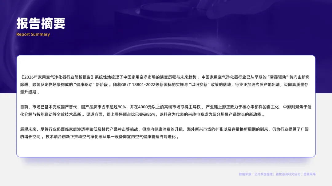 2026家用空气净化器行业简析报告-嘉世咨询