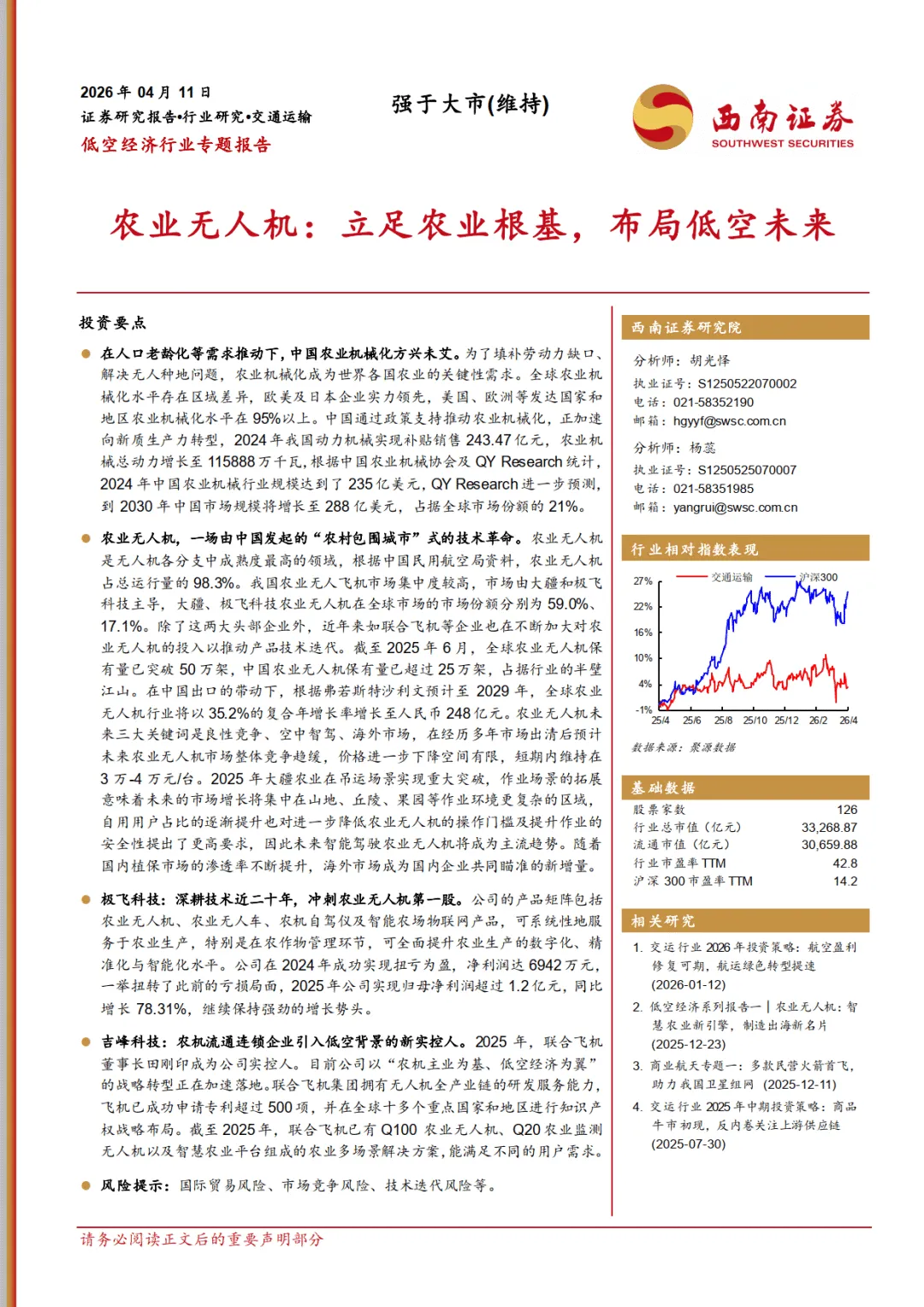 低空经济行业专题报告:农业无人机,立足农业根基,布局低空未来--西南证券