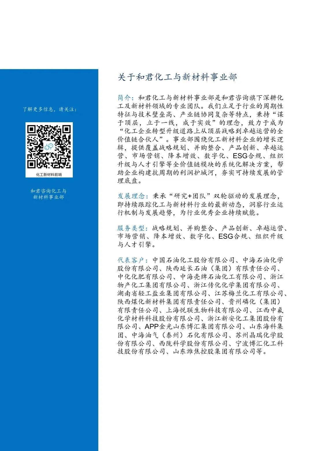 和君化工与新材料事业部是和君咨询旗下深耕化工及新材料领域的专业团队。我们立足于行业的周期性特征与技术壁垒高、产业链协同复杂等特点,秉持“谋于顶层,立于一线,成于实效”的理念,致力于成为“化工企业转型升级道路上从顶层战略到卓越运营的全价值链合伙人”。事业部围绕化工新材料企业的增长逻辑,提供覆盖战略规划、并购整合、产品创新、卓越运营、市场营销、降本增效、数字化、ESG合规、组织升级与人才引擎等全价值链模块的系统化解决方案,帮助企业构建抗周期的利润护城河,夯实可持续发展的管理底盘。