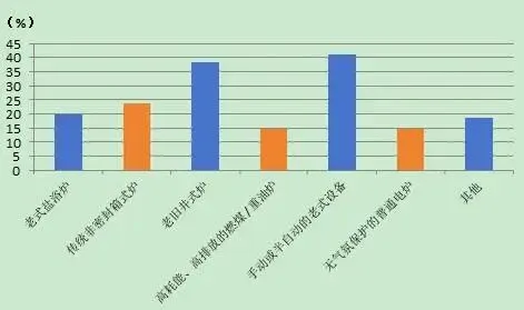 “十四五”期间, 在“双碳”目标的指引下和推动传统制造业升级目标下,我国热处理行业在淘汰落后产能和加强环境保护两方面发力治理,对一些污染大、能耗高、产能低的企业进行了改造和智能化升级,相应地我们从图中可以看到低效率、高能耗、重污染的手动或半自动的老式设备(41.1%)、老旧井式炉(38.4%)、传统非密封箱式炉(23.8%)首当其冲地被淘汰掉或升级换代。