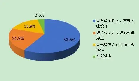 理化检测设备的投入在“十五五”期间依然是企业最看重的一项,从调查统计情况来看,有36.1%的被调查企业在未来五年依然会大力投入理化检测设备。