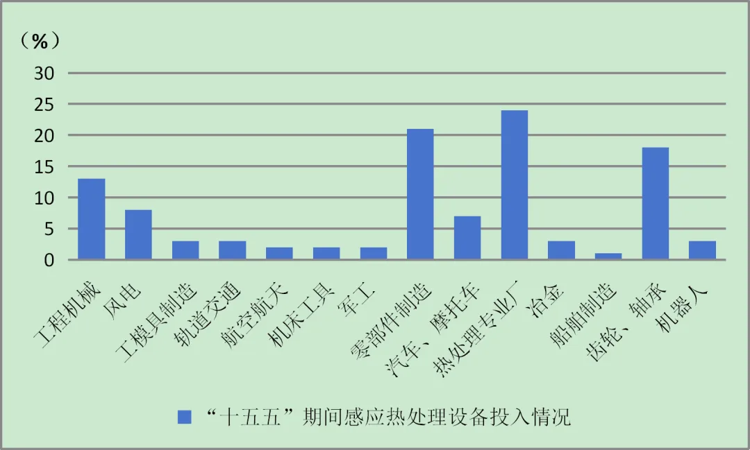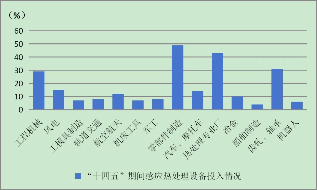 “十四五”期间重点投入热处理设备:感应热处理装备、真空热处理炉及连续式热处理生产线等,这些设备在“十四五”期间投入较大,分别为:感应热处理设备(含淬火机床)(35.1%)、真空热处理炉(含低压渗碳)(34.8%)、连续式热处理生产线(网带、推盘、铸链等)(28.8%)、数字化/智能化控制系统(新增或升级)(27.8%)。
