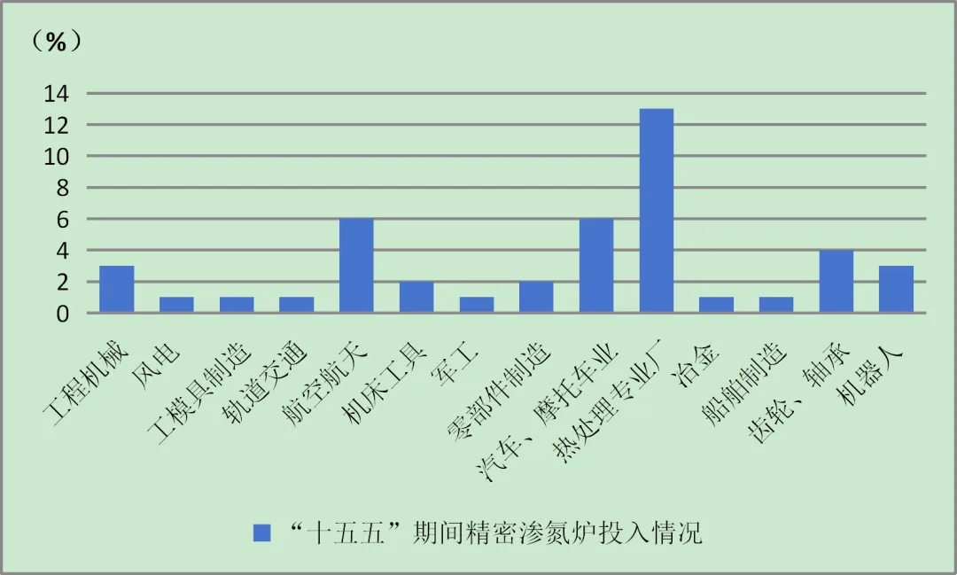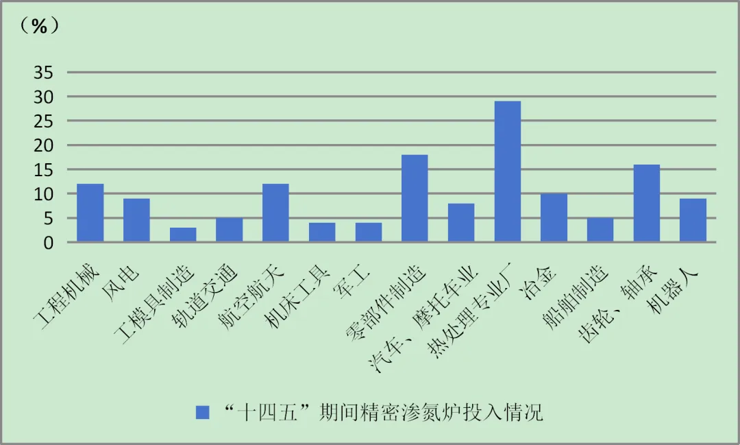 “十四五”期间,在热处理装备的投入上,精密渗氮炉(20.1%)和大型井式渗碳炉(17.6%),较“十三五”期间有大幅上升, “十五五”期间,精密渗氮炉(13.6%),大型井式渗碳炉( 8.6% )。