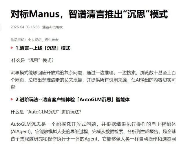 总结一下:智谱清言的沉思模式,是目前我见过最强的免费深度研究工具。它不是简单的搜索增强,而是真正能替你完成"信息搜集-分析-整理-输出"这整条链路的AI助手。