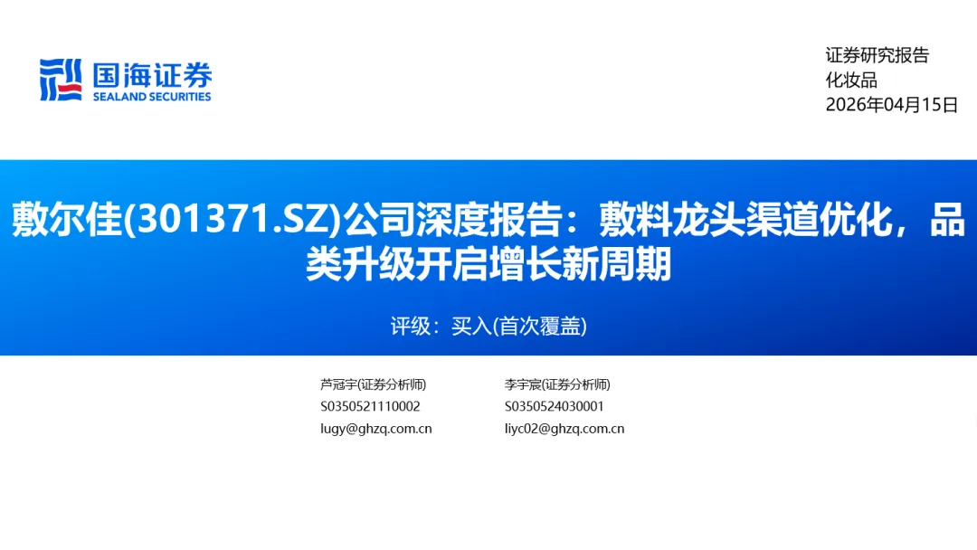 本公众号不是国海证券的研究报告发布平台,只是转发国海证券已发布研究报告的部分观点,订阅者有可能会因缺乏对完整报告的了解或缺乏相关的解读而对资料中的关键假设、评级、目标价等内容产生理解上的歧义,应以国海证券研究所发布的完整报告为准,且须寻求专业人士的指导及解读。