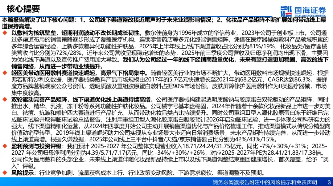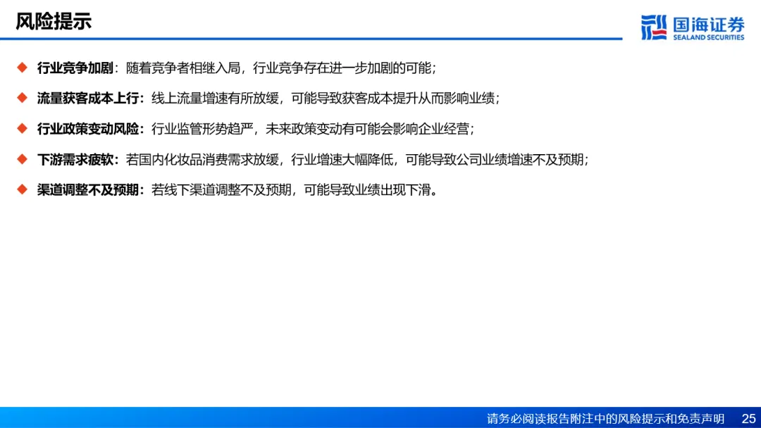 风险提示:行业竞争加剧、流量获客成本上行、行业政策变动风险、下游需求疲软、渠道调整不及预期