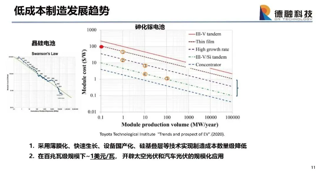 4,高成本,①底电池锗衬底~150um, 贵重金属消耗大,②制造规模小, MW级,③通用型制造模式;