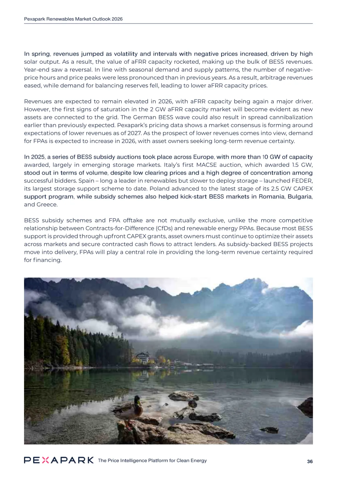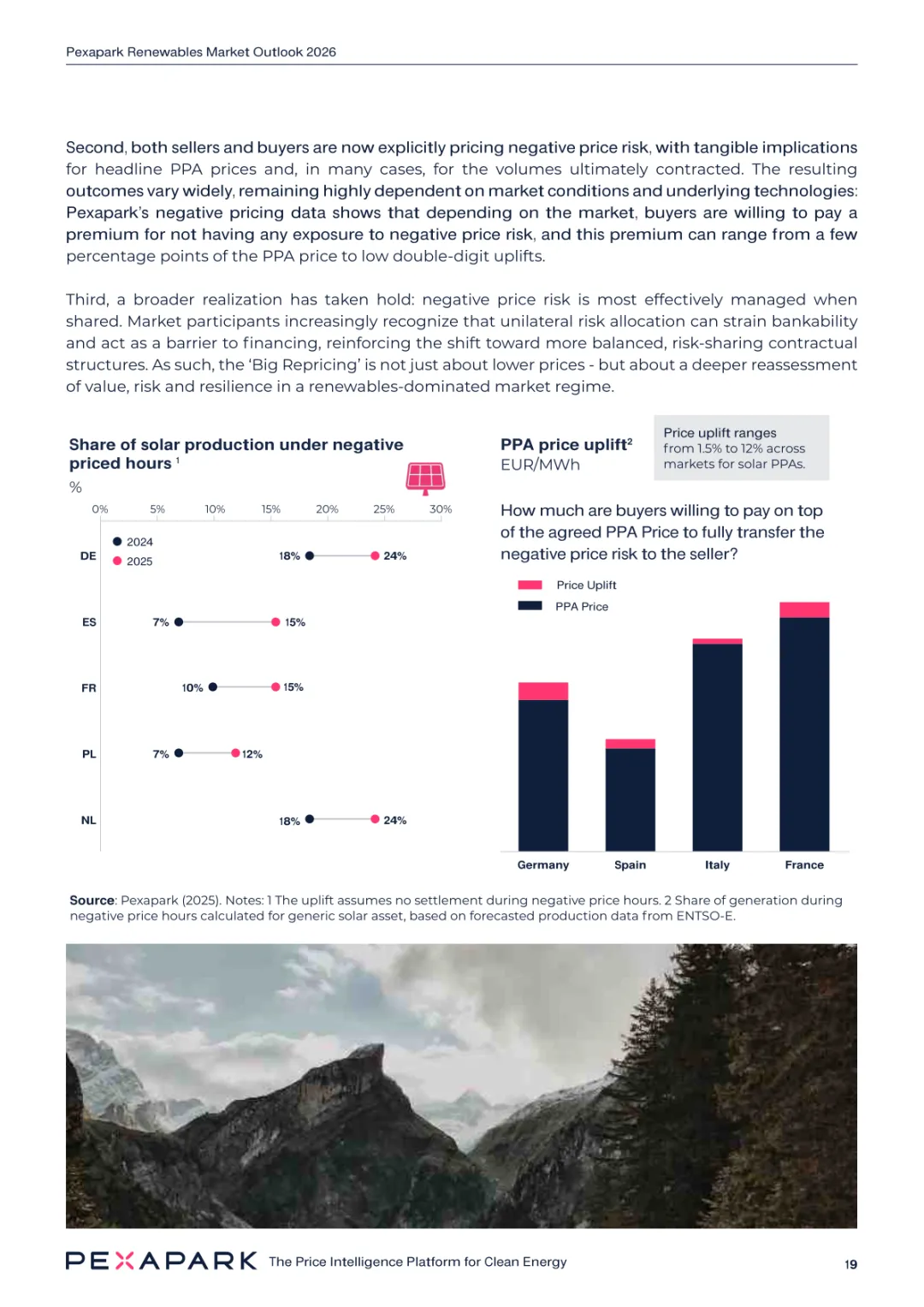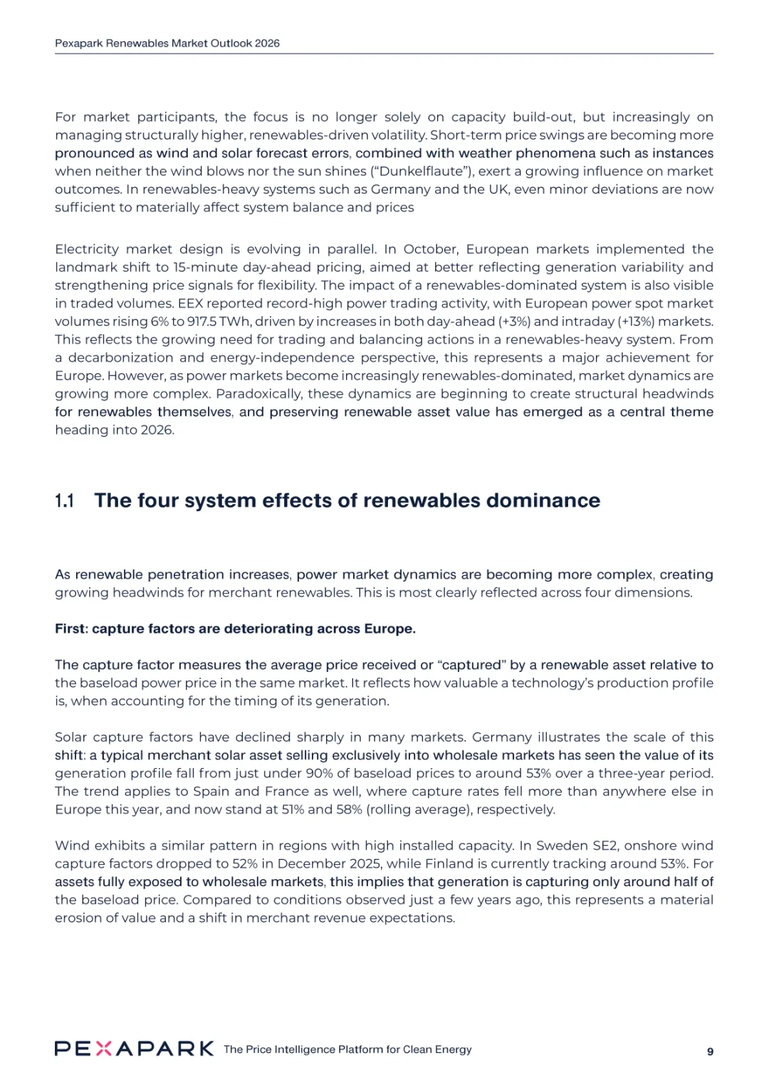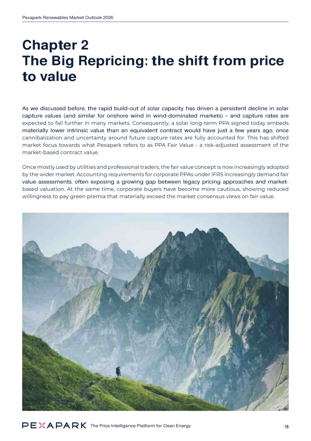 2025 年欧洲电力系统迈入可再生能源主导阶段,风光发电量占比持续提升。市场进入大规模价值重估周期,发电捕获率下滑,电价波动与负电价成为常态。长期购电协议市场逻辑重构,资产估值与收益模式迎来深度调整。欧洲购电协议签约量有所回落,电池储能采购协议实现三倍增长。灵活性采购协议成为储能项目融资核心支撑,合同模式持续创新。 utilities 凭借资产组合与风险管控能力,成为市场风险承接主体。独立发电商转向收益管理与资产组合优化模式。企业采购群体出现分化,科技行业保持稳定需求,普通企业采取观望态度。美国市场装机规模创新高,政策变动带来价格上行压力。储能项目受益于电网可靠性需求,保持快速增长态势。报告预测 2026 年捕获率将继续走低,储能相关合同量突破 10GW。市场主体加快适应波动环境,价值挖掘重心转向灵活性与风险管控。