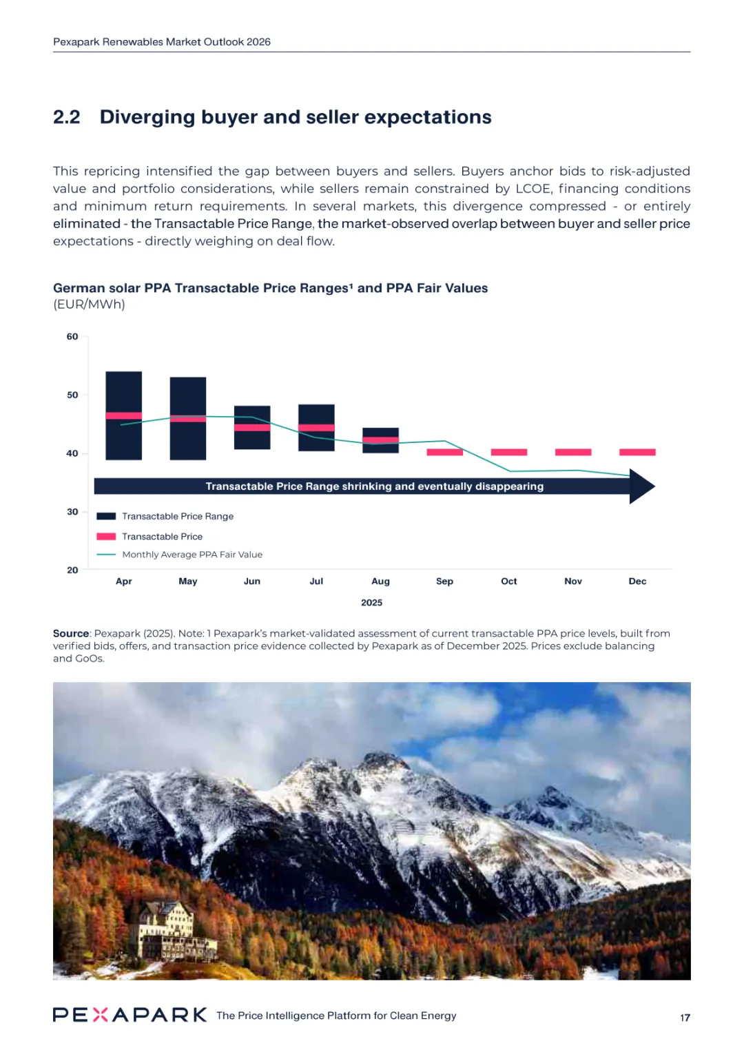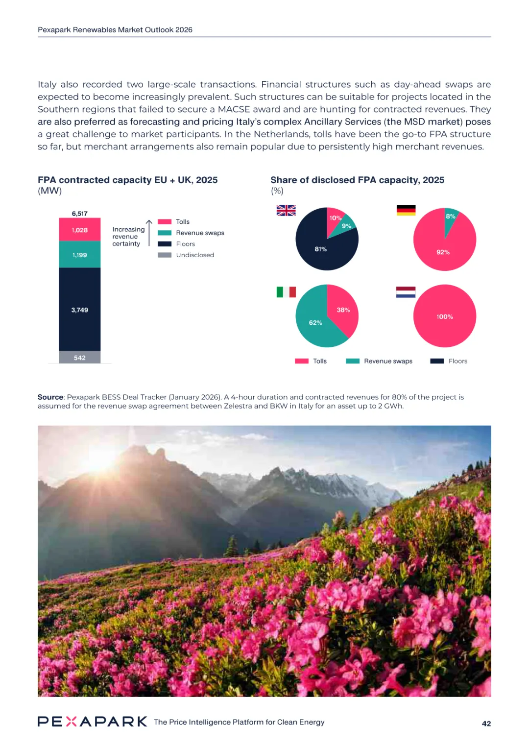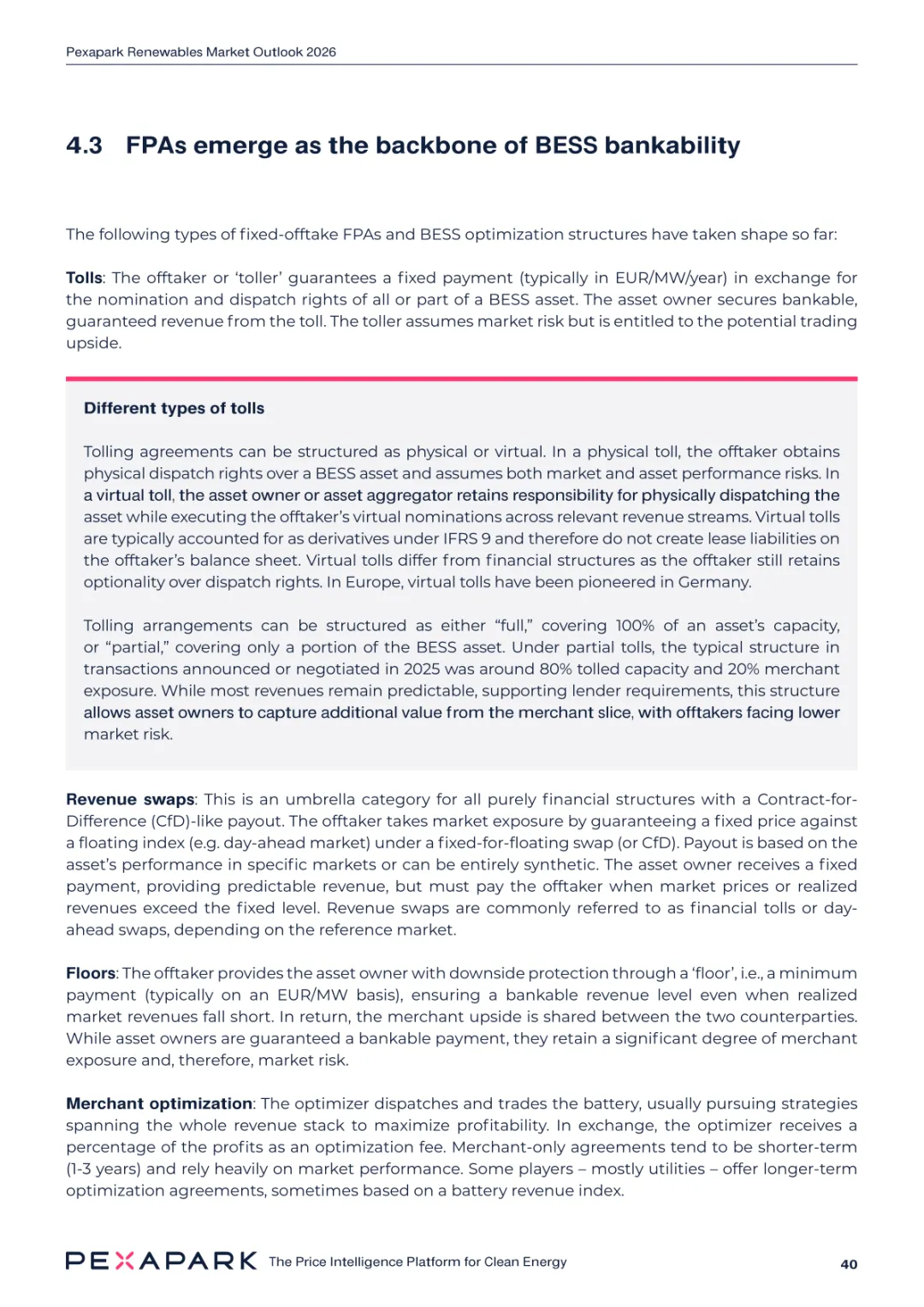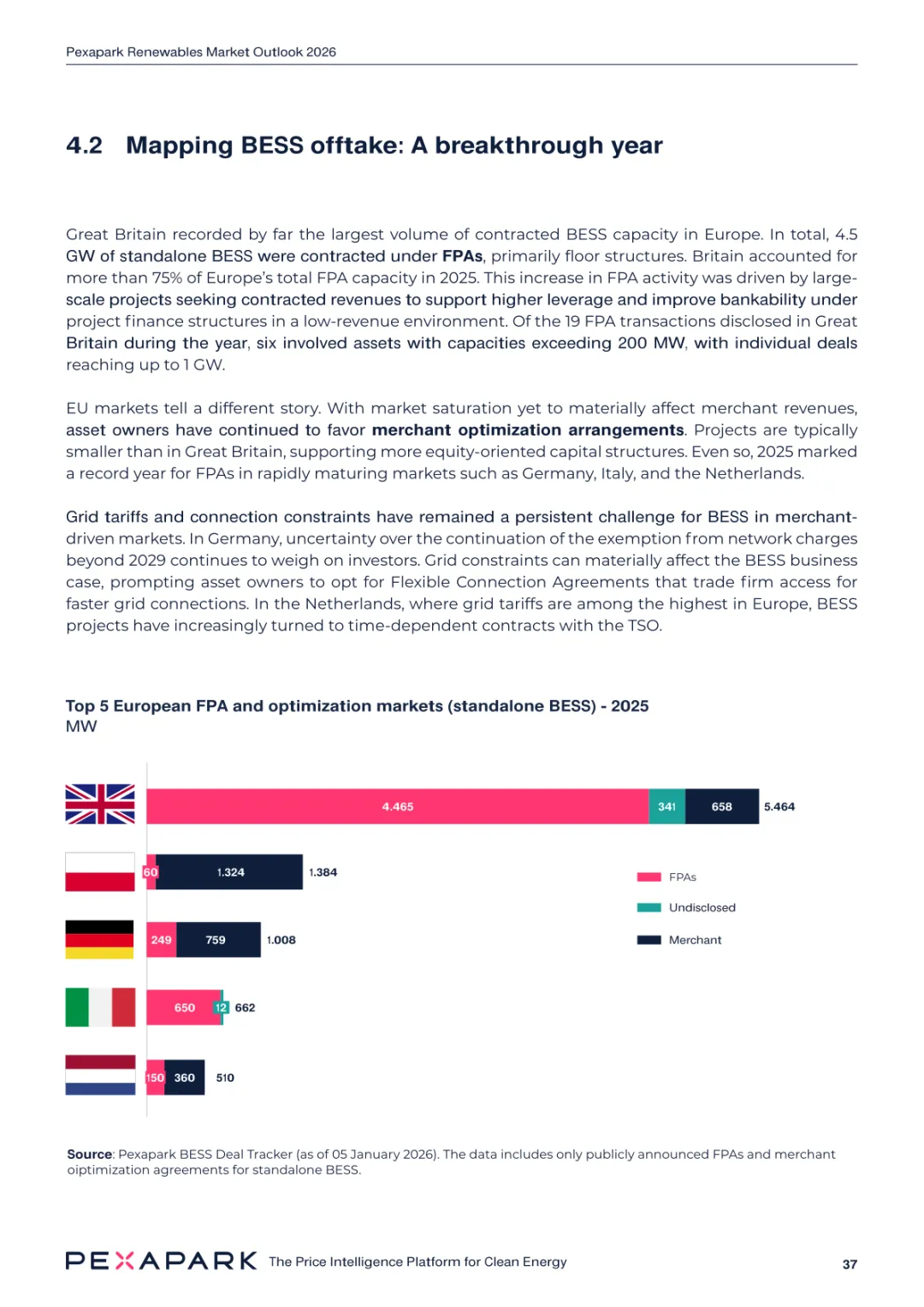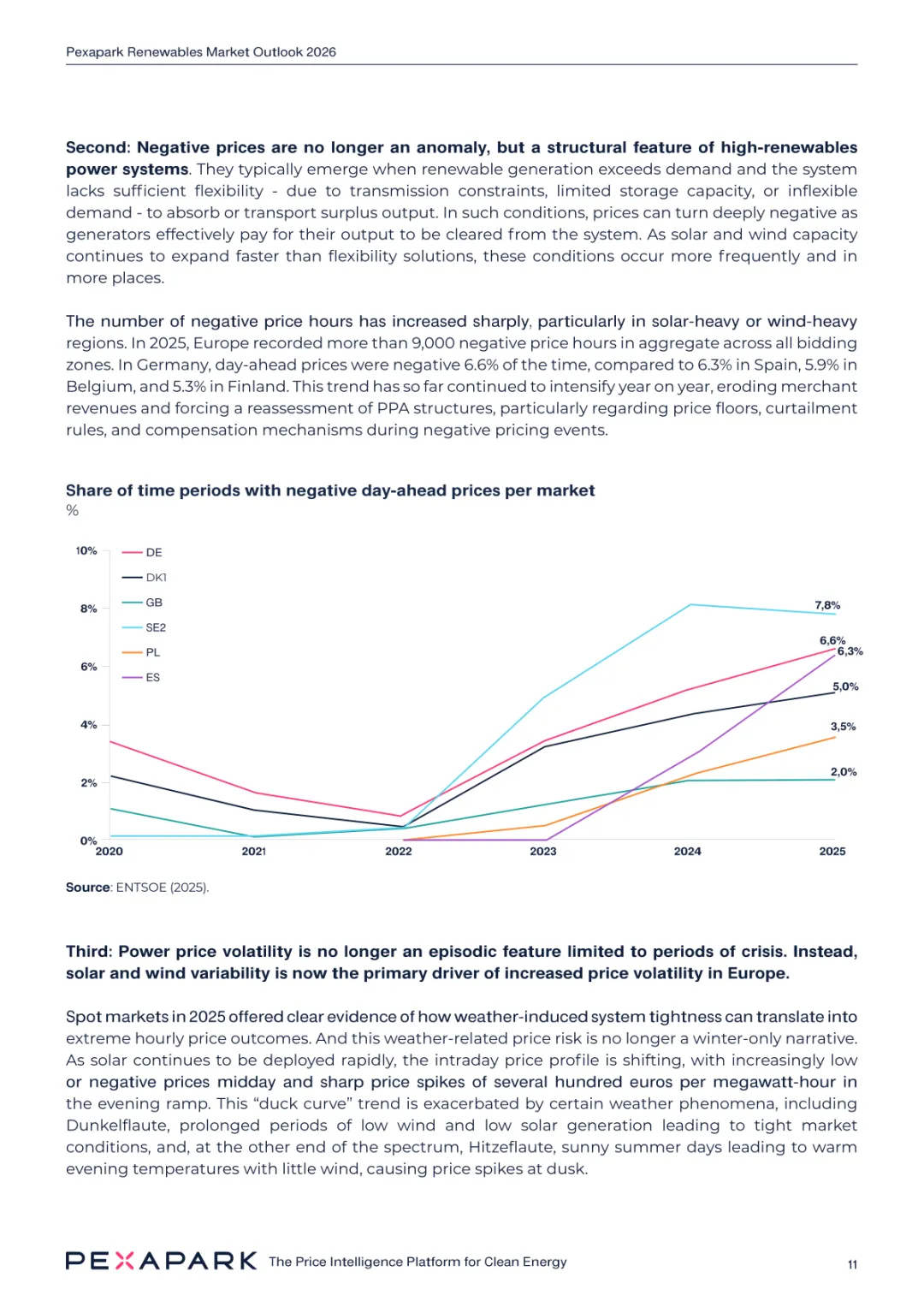 2025 年欧洲电力系统迈入可再生能源主导阶段,风光发电量占比持续提升。市场进入大规模价值重估周期,发电捕获率下滑,电价波动与负电价成为常态。长期购电协议市场逻辑重构,资产估值与收益模式迎来深度调整。欧洲购电协议签约量有所回落,电池储能采购协议实现三倍增长。灵活性采购协议成为储能项目融资核心支撑,合同模式持续创新。 utilities 凭借资产组合与风险管控能力,成为市场风险承接主体。独立发电商转向收益管理与资产组合优化模式。企业采购群体出现分化,科技行业保持稳定需求,普通企业采取观望态度。美国市场装机规模创新高,政策变动带来价格上行压力。储能项目受益于电网可靠性需求,保持快速增长态势。报告预测 2026 年捕获率将继续走低,储能相关合同量突破 10GW。市场主体加快适应波动环境,价值挖掘重心转向灵活性与风险管控。