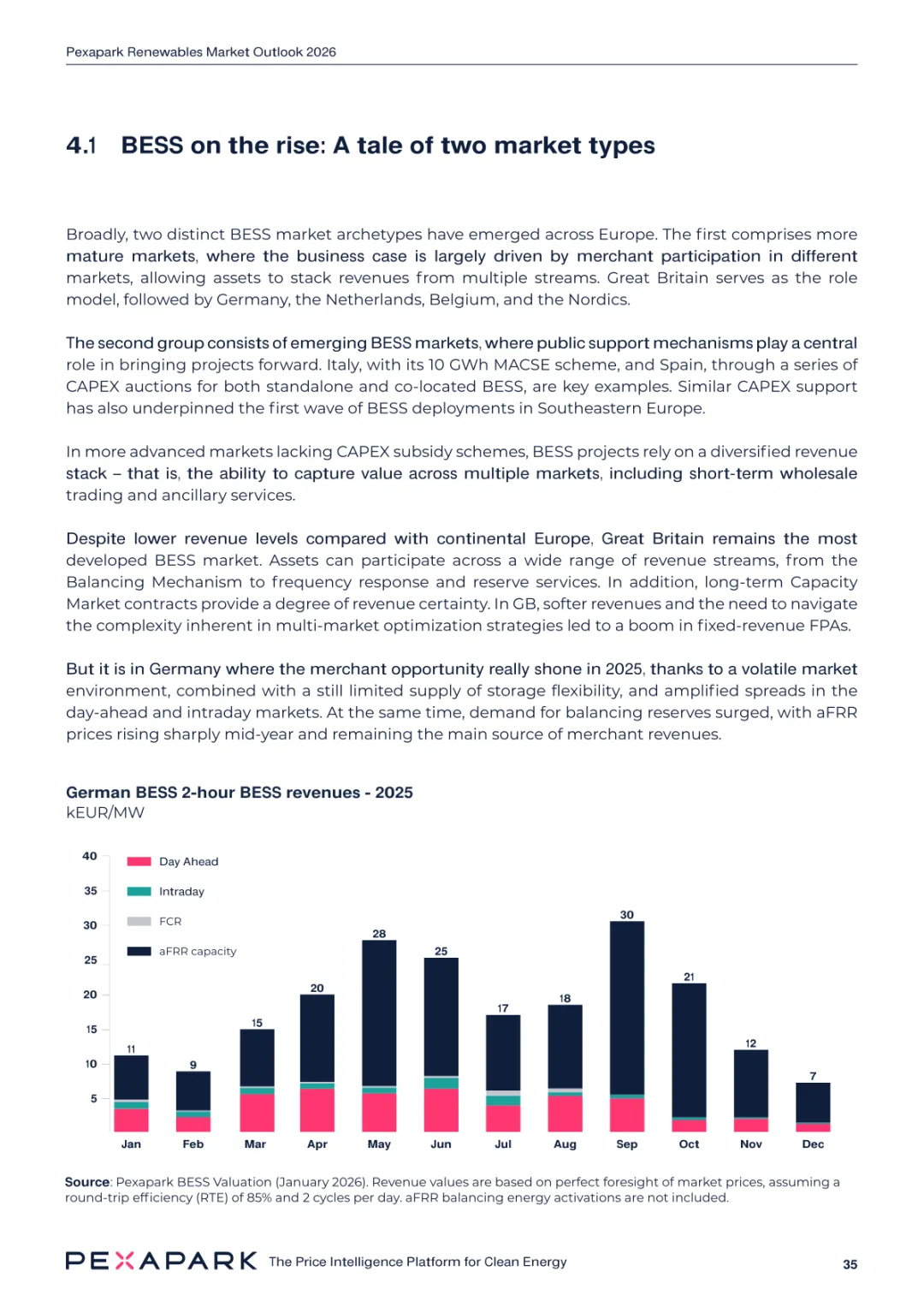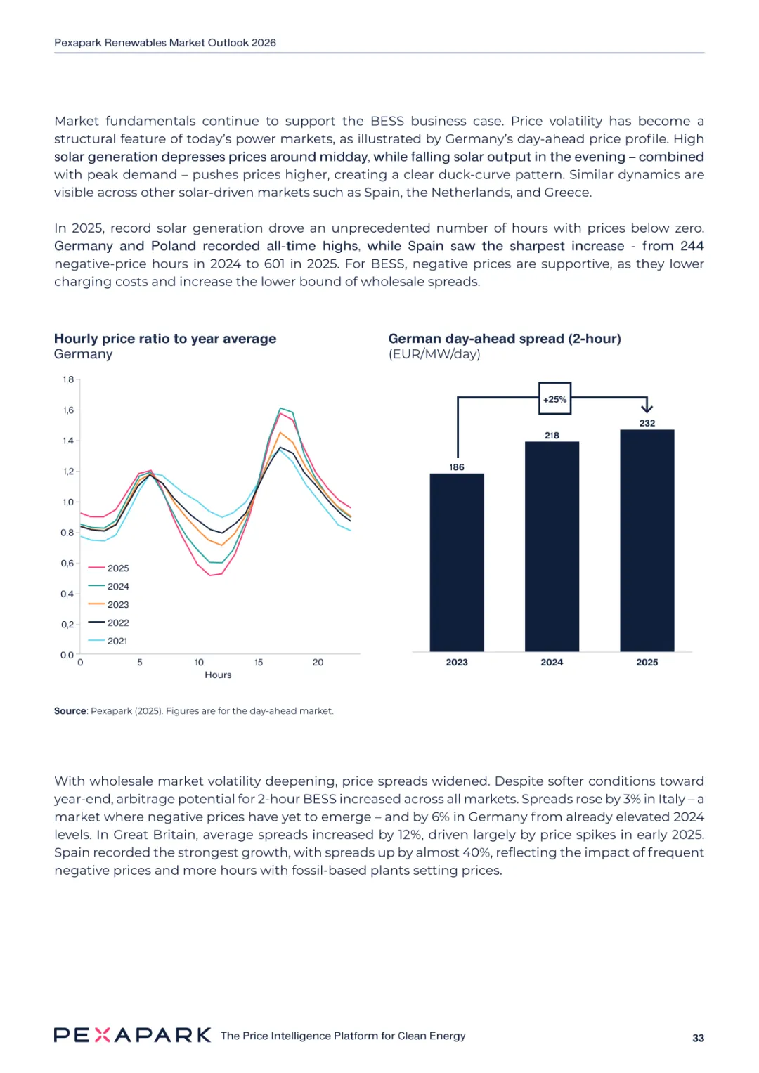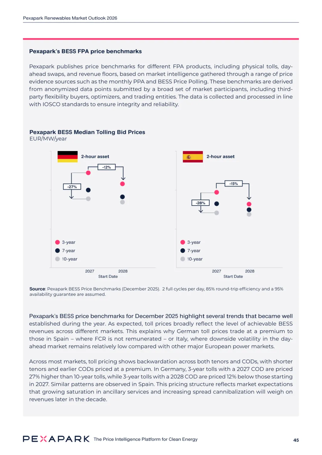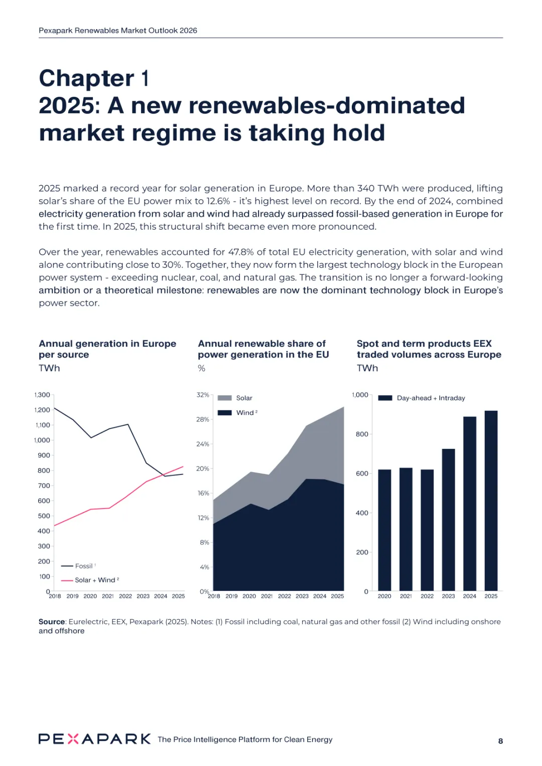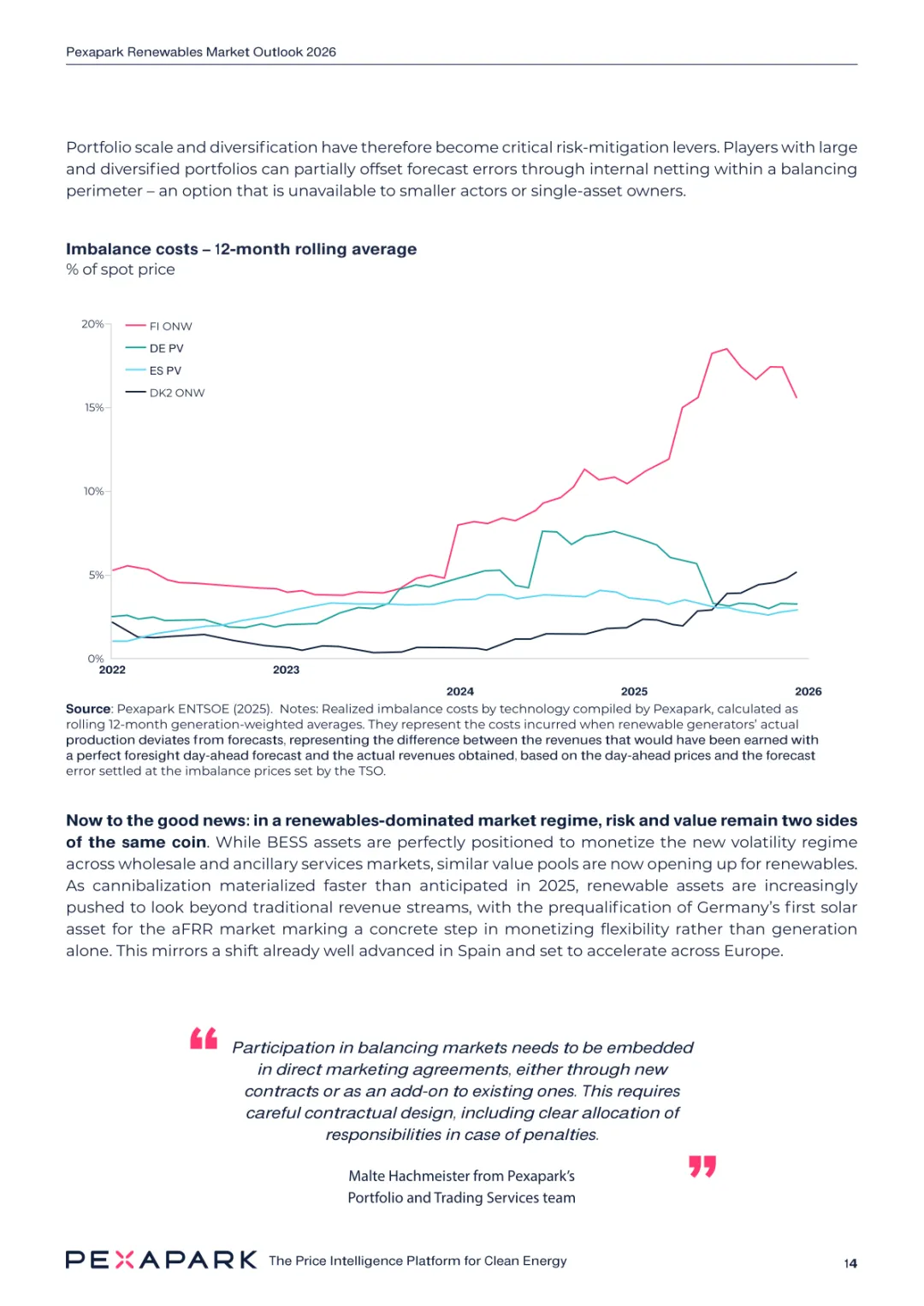 2025 年欧洲电力系统迈入可再生能源主导阶段,风光发电量占比持续提升。市场进入大规模价值重估周期,发电捕获率下滑,电价波动与负电价成为常态。长期购电协议市场逻辑重构,资产估值与收益模式迎来深度调整。欧洲购电协议签约量有所回落,电池储能采购协议实现三倍增长。灵活性采购协议成为储能项目融资核心支撑,合同模式持续创新。 utilities 凭借资产组合与风险管控能力,成为市场风险承接主体。独立发电商转向收益管理与资产组合优化模式。企业采购群体出现分化,科技行业保持稳定需求,普通企业采取观望态度。美国市场装机规模创新高,政策变动带来价格上行压力。储能项目受益于电网可靠性需求,保持快速增长态势。报告预测 2026 年捕获率将继续走低,储能相关合同量突破 10GW。市场主体加快适应波动环境,价值挖掘重心转向灵活性与风险管控。