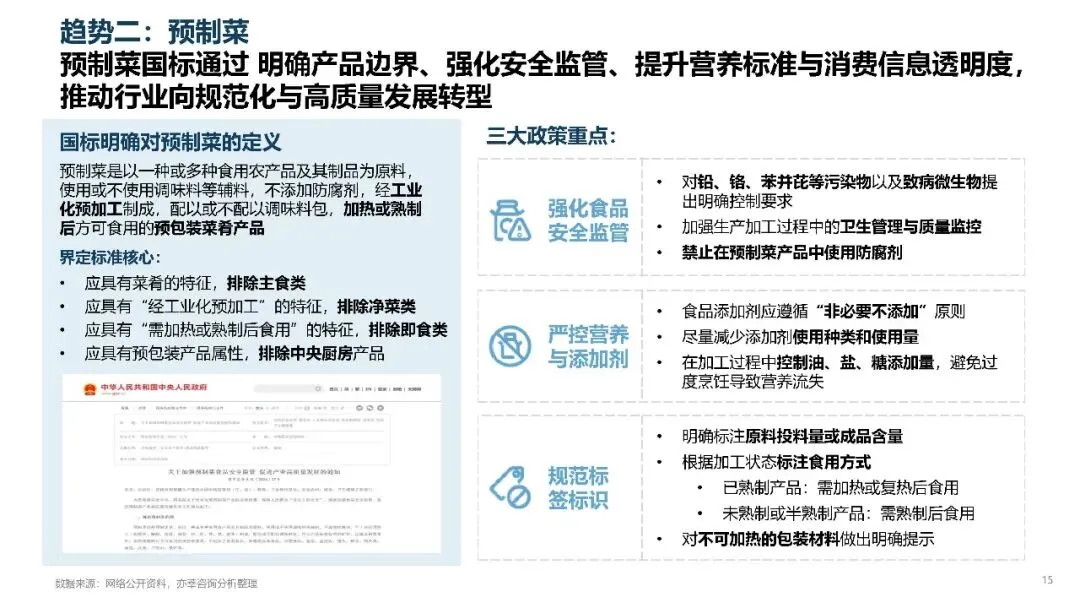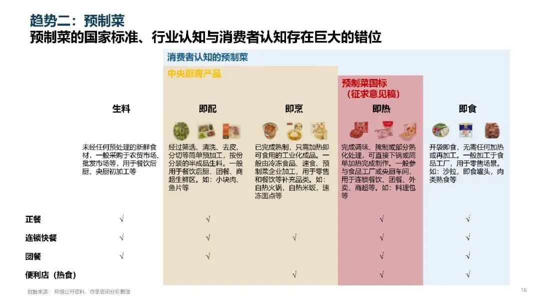 政策重点围绕规范标签标识,强化食品安全监管和严控营养与添加剂展开,要求明确标注原料投料量和食用方式,禁止在预制菜中使用防腐剂,遵循非必要不添加原则控制食品添加剂和油盐糖的使用量。不过国标定义与消费者认知之间的错位依然存在,这将是行业未来一段时间需要持续面对的问题。