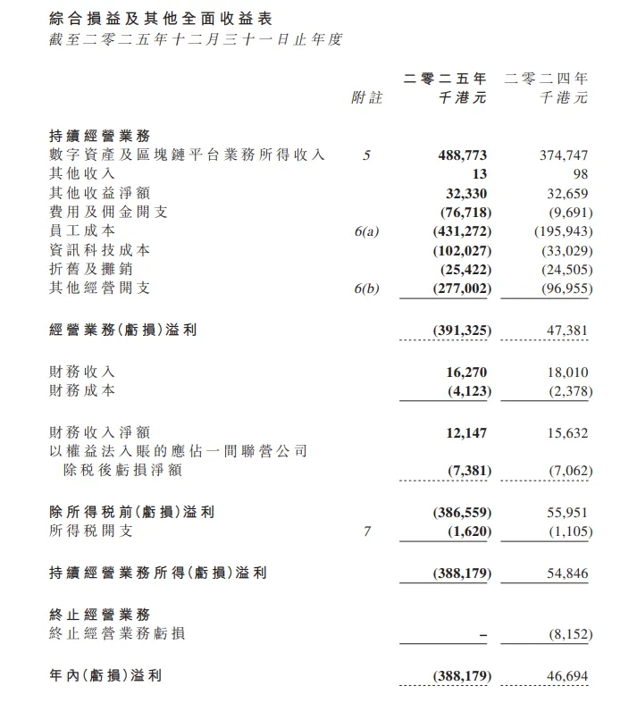3月31日,OSL集团发布2025年全年业绩报告。报告显示,核心营业收入:5.34亿港元,同比增长150.1%;总收入:4.89亿港元,创历史新高,同比增长30.4%;稳定币交易量占总交易量:60%;平台总交易量:2012.2亿港元,同比增长200.7%;收入分布:香港33%,海外67% 。数字资产及区块链平台业务交易量同比激增200.7%,达到2012亿港元。当期持续经营业务亏损3.882亿港元。
