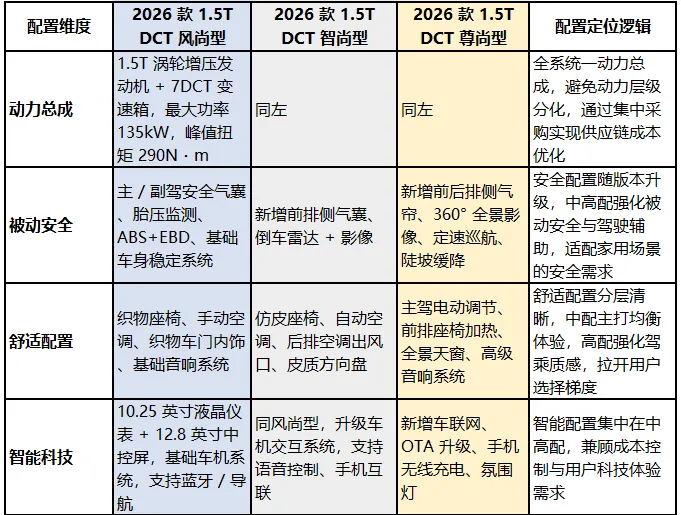 配置逻辑贴合用户需求:以中配为主打,配置分层符合目标用户的购车习惯,避免了入门市场常见的“低配减配严重、高配性价比低”的问题。