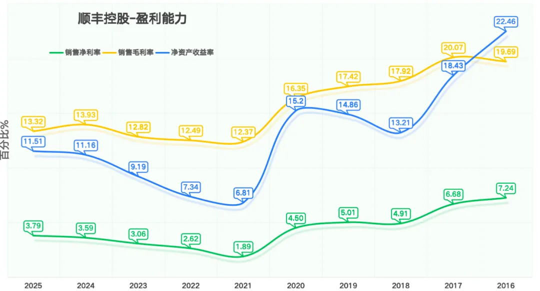 下面分析一下顺丰控股的盈利能力。