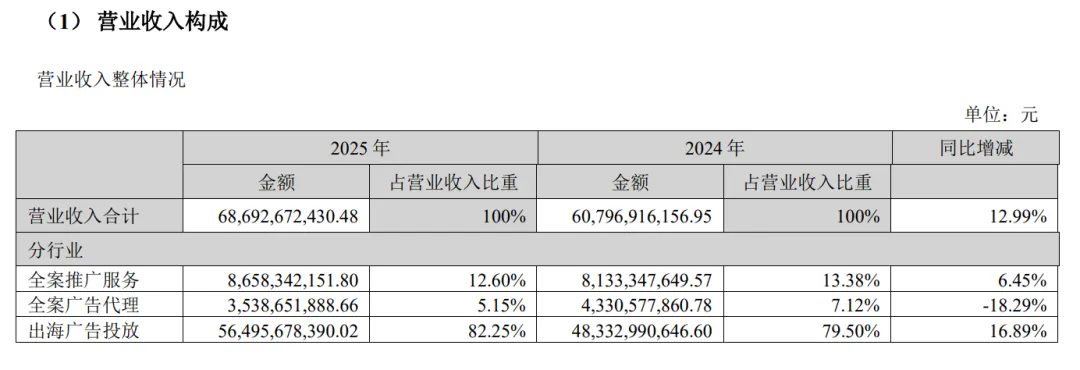 出海广告投放:收入 564.96 亿元,同比增长 16.89%,占总营收比例高达82.25%,成为营收增长的核心驱动力 。蓝标是 Meta、Google、TikTok for Business、X 等平台国内官方授权代理商,头部平台广告收入实现同比增长 。