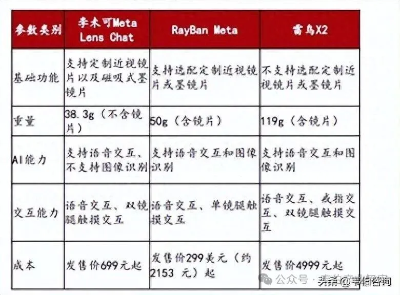AI眼镜产品功能对比