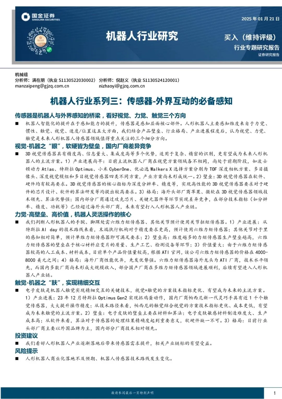 人形机器人行业专题:传感器的技术路径、竞争格局与产业重构|附33页PDF文件下载