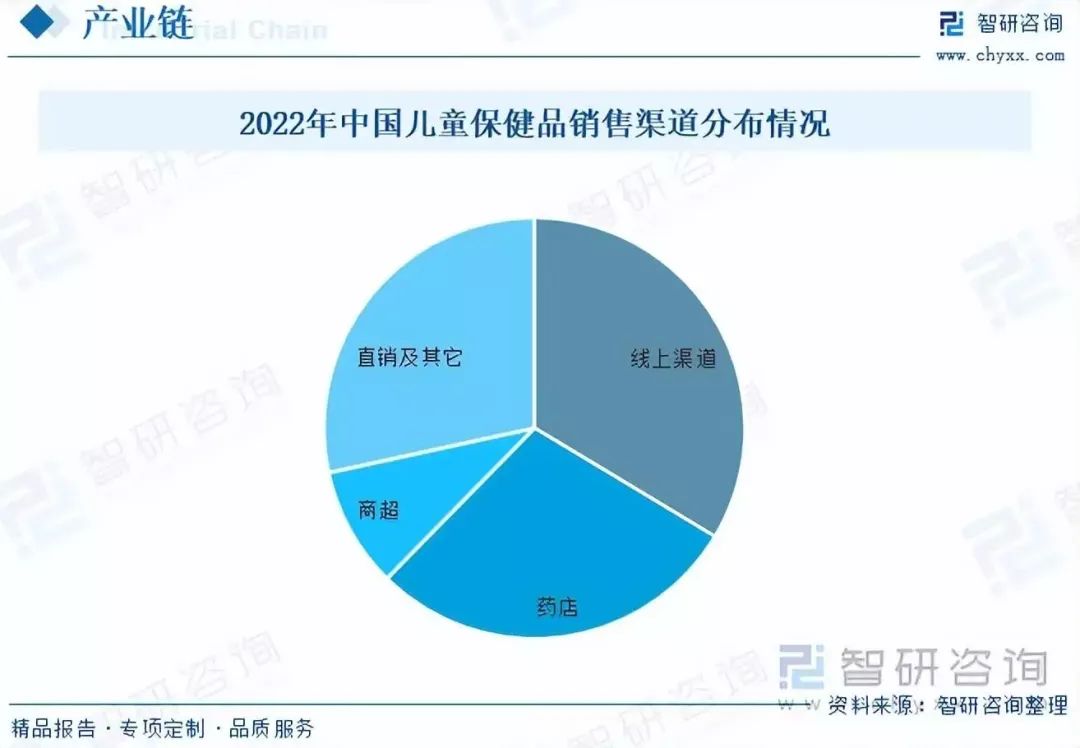 从行业销售渠道分布来看,随着近年来我国消费群体的年轻化以及电商行业的快速发展,我国儿童保健品的销售逐渐向线上渠道转移,目前,电商渠道是增长最快的渠道,许多品牌都在加大线上营销、社交电商的投入力度。据资料显示,2022年我姑哦儿童保健品销售驱动中,线上渠道占比最高,为33.62%,其次为药店渠道,占比为28.72%。