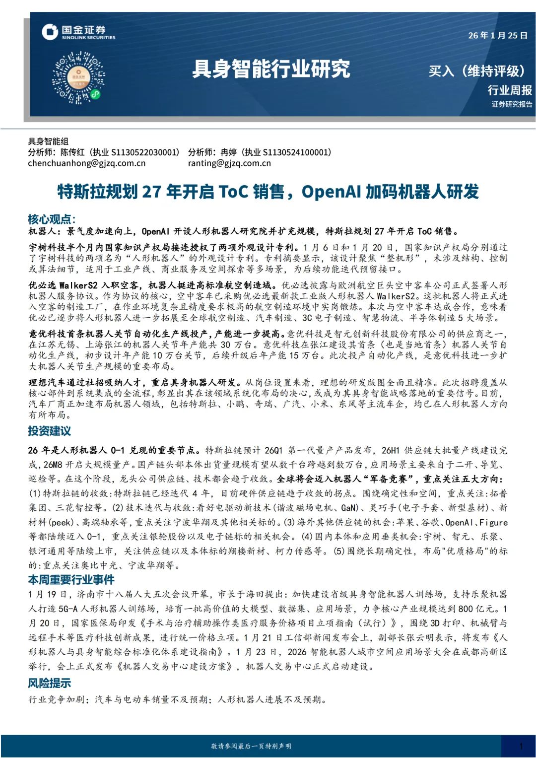 下载报告:具身智能行业研究:特斯拉规划27年开启ToC销售,OpenAI加码机器人研发