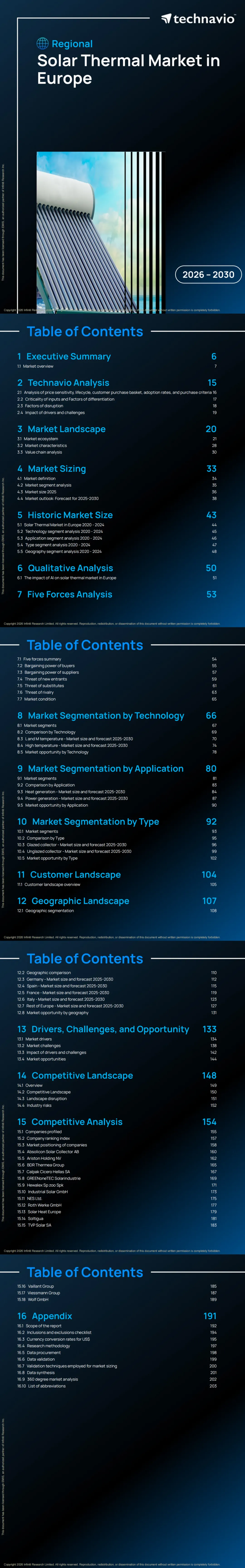 - 市场参与者:格局分散,涵盖综合暖通集团(阿里斯顿、威能、菲斯曼)、专业光热企业(Absolicon、GREENoneTEC、Industrial Solar)、组件与系统集成商;