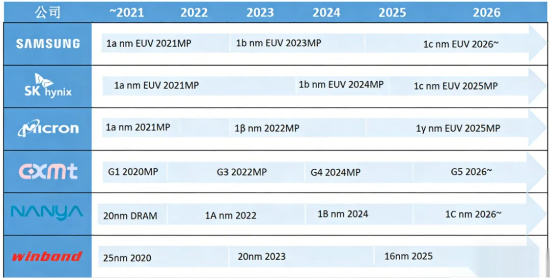 从DDR4向DDR5/LPDDR5加速过渡,规划2025年底至2026年间量产HBM3;HBM3预计2026-2027年量产,而SK海力士已于2025年出货更先进的HBM4样品,代差约1-2年;持续扩产,但具体产能数据未公开披露