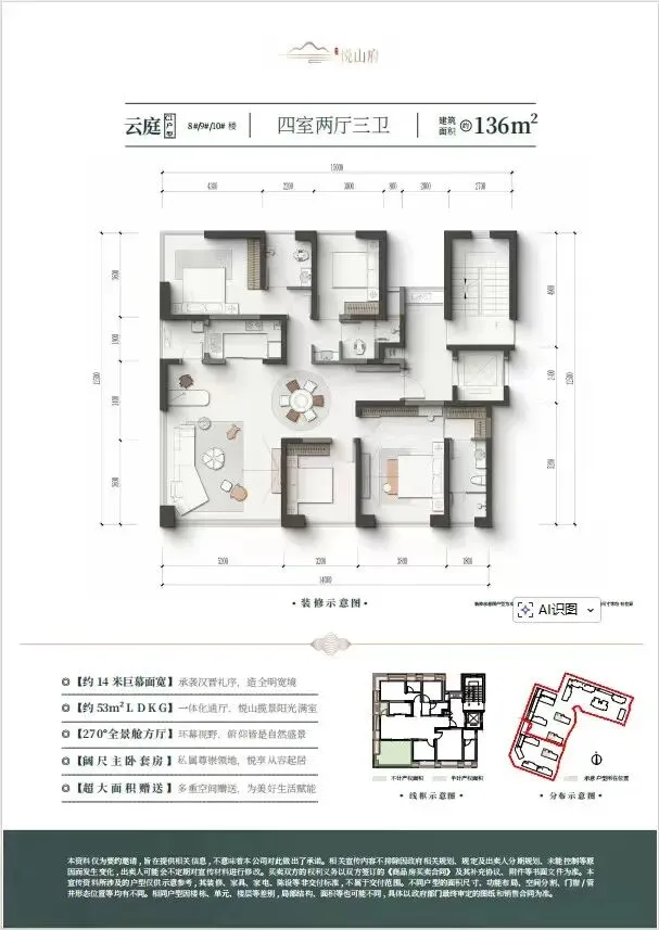 「云庭」136㎡,位于“清风林径”中庭,以一组超越常规的物理参数,重新定义了户型与景观的关系。这不是感性的描绘,而是一系列可验证的设计答案。