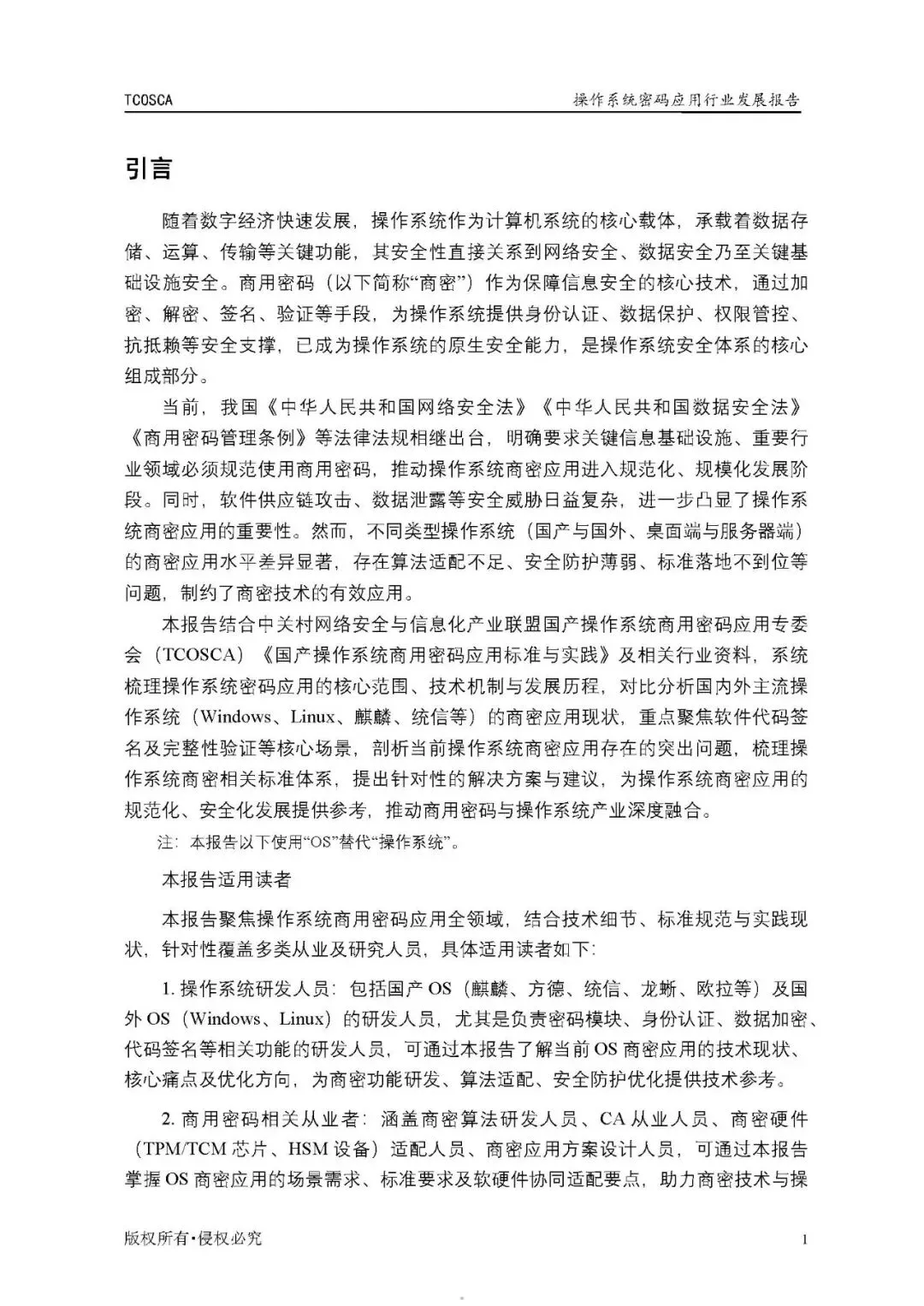 随着数字经济快速发展,操作系统作为计算机系统的核心载体,承载着数据存储、运算、传输等关键功能,其安全性直接关系到网络安全、数据安全乃至关键基础设施安全。商用密码(以下简称“商密”)作为保障信息安全的核心技术,通过加密、解密、签名、验证等手段,为操作系统提供身份认证、数据保护、权限管控、抗抵赖等安全支撑,已成为操作系统的原生安全能力,是操作系统安全体系的核心组成部分。