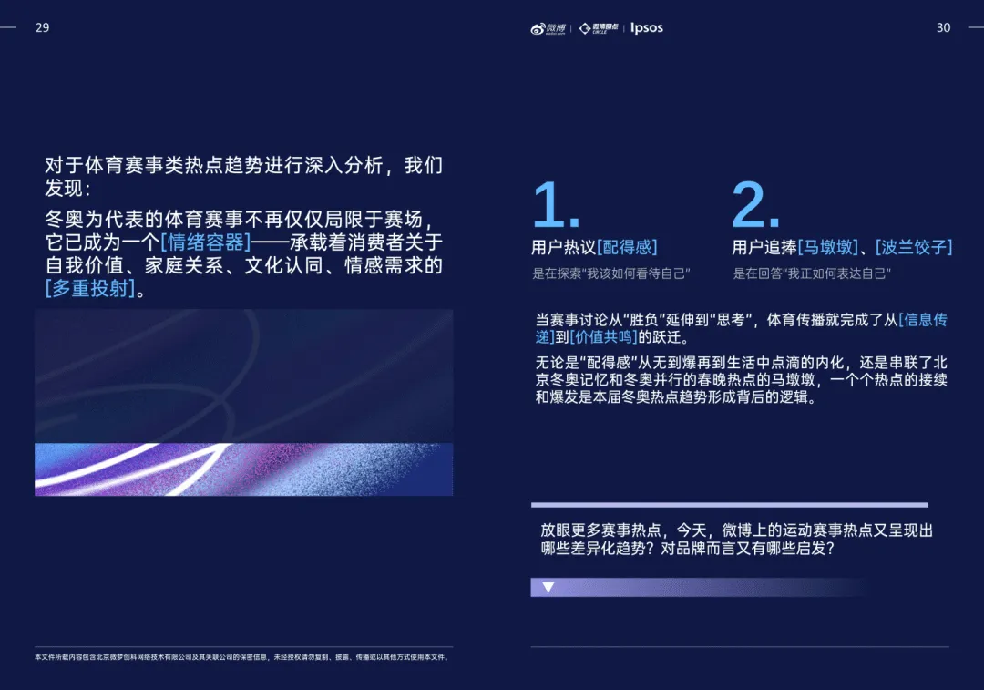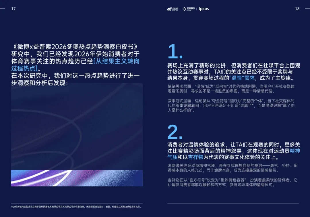 报告指出,2026 体育赛事已成为承载自我价值、文化认同、情感需求的情绪容器。品牌需抓住复合标签、画面感场景、差异化产品三大要素,将实时热点转化为商业热点,沉淀长期品牌资产,迎接世界杯等后续赛事的营销机遇。