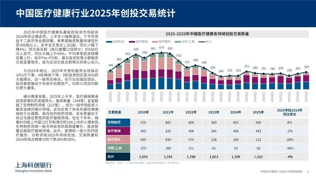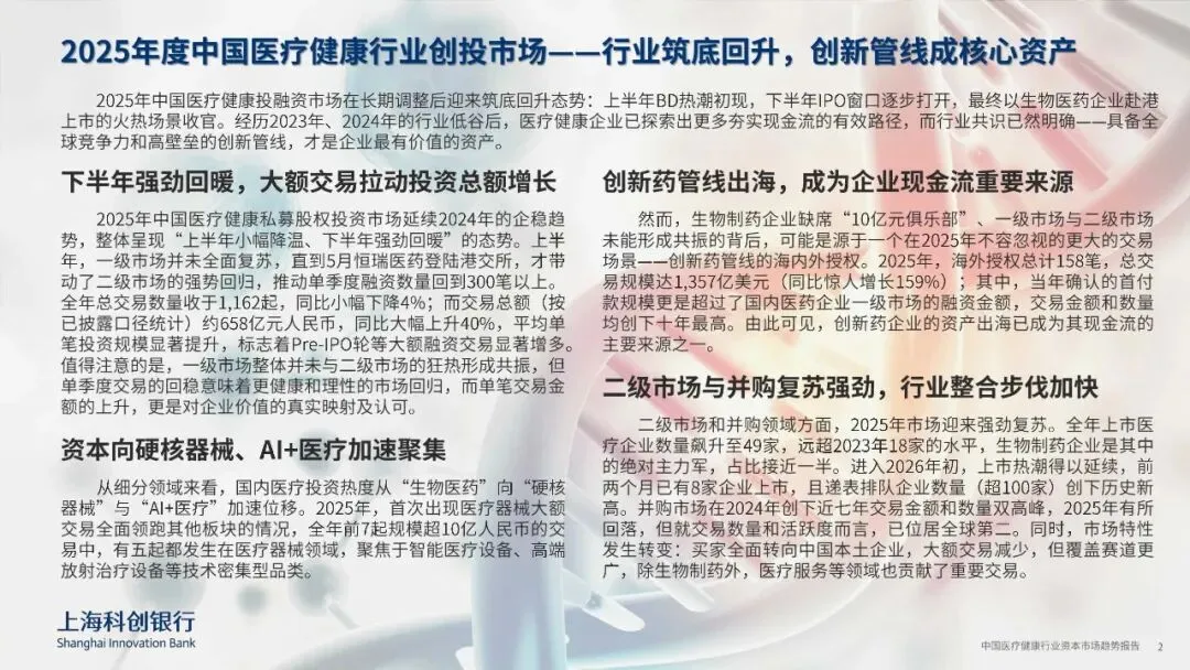 2025年中国医疗健康投融资市场在长期调整后迎来筑底回升态势:上半年BD热潮初现,下半年IPO窗口逐步打开,最终以生物医药企业赴港上市的火热场景收官。