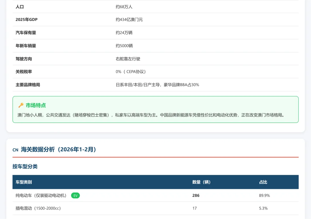澳门汽车市场调研2025和2026年1-2月份数据分析