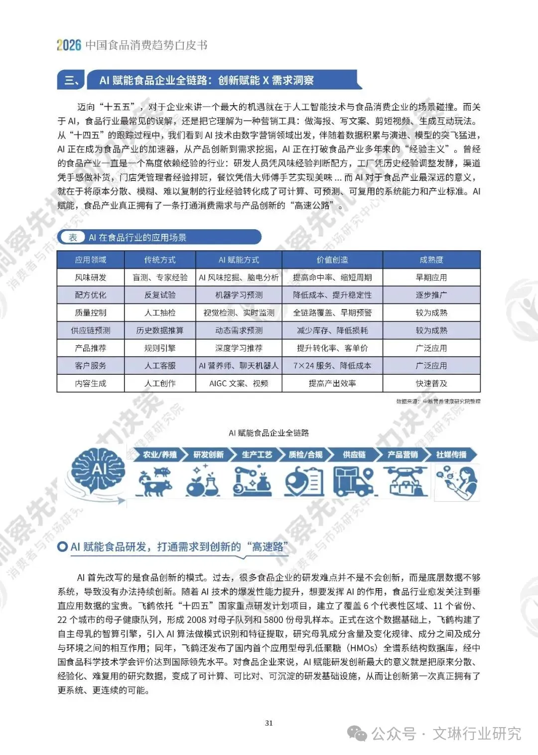 AI 对行业的改造,早已跳出了做海报、写文案的基础应用。在研发端,它能加速菌株筛选,优化产品配方,缩短研发周期,打通从消费需求到产品创新的高速路。在生产端,它能实现全链路的质量控制,实时预警生产风险。在供应链端,它能完成动态需求预测,减少库存与损耗。在消费端,它从工具走向了消费体验升级,智能营养咨询、对话式点单、标准化服务落地,AI 正在重新定义品牌与消费者的连接方式,也正在逐步成为食品企业的核心竞争力。