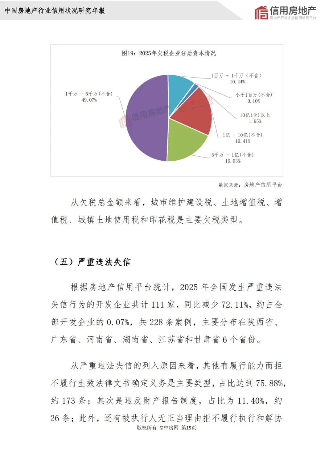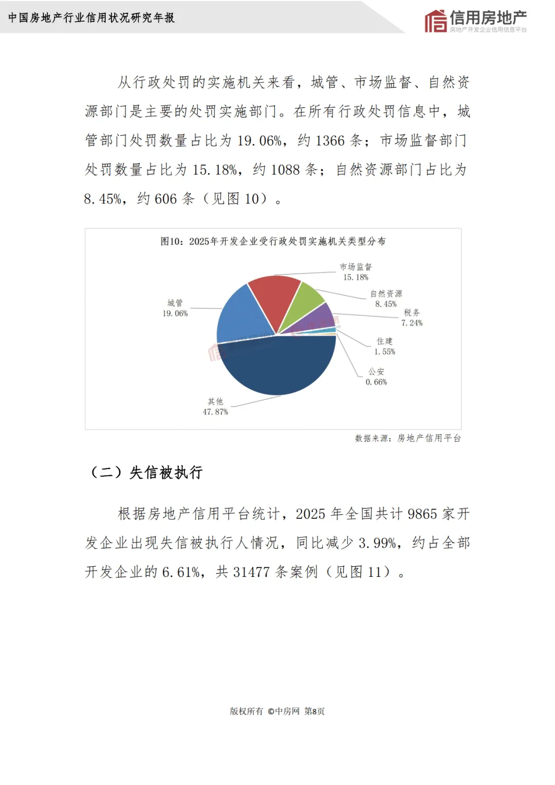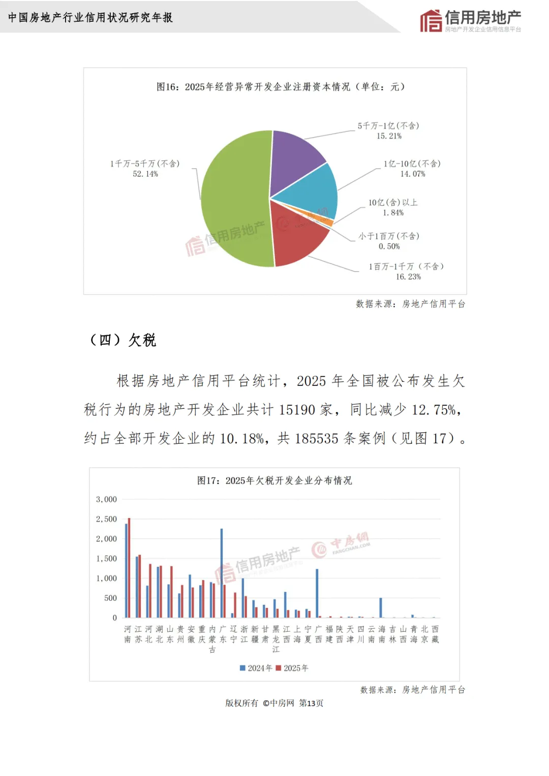 2025 年房地产行业信用环境整体趋稳向好,不良信用信息总量同比下降,债务违约规模显著收缩,信用政策体系持续完善,行业信用建设迈向规范化、精细化。