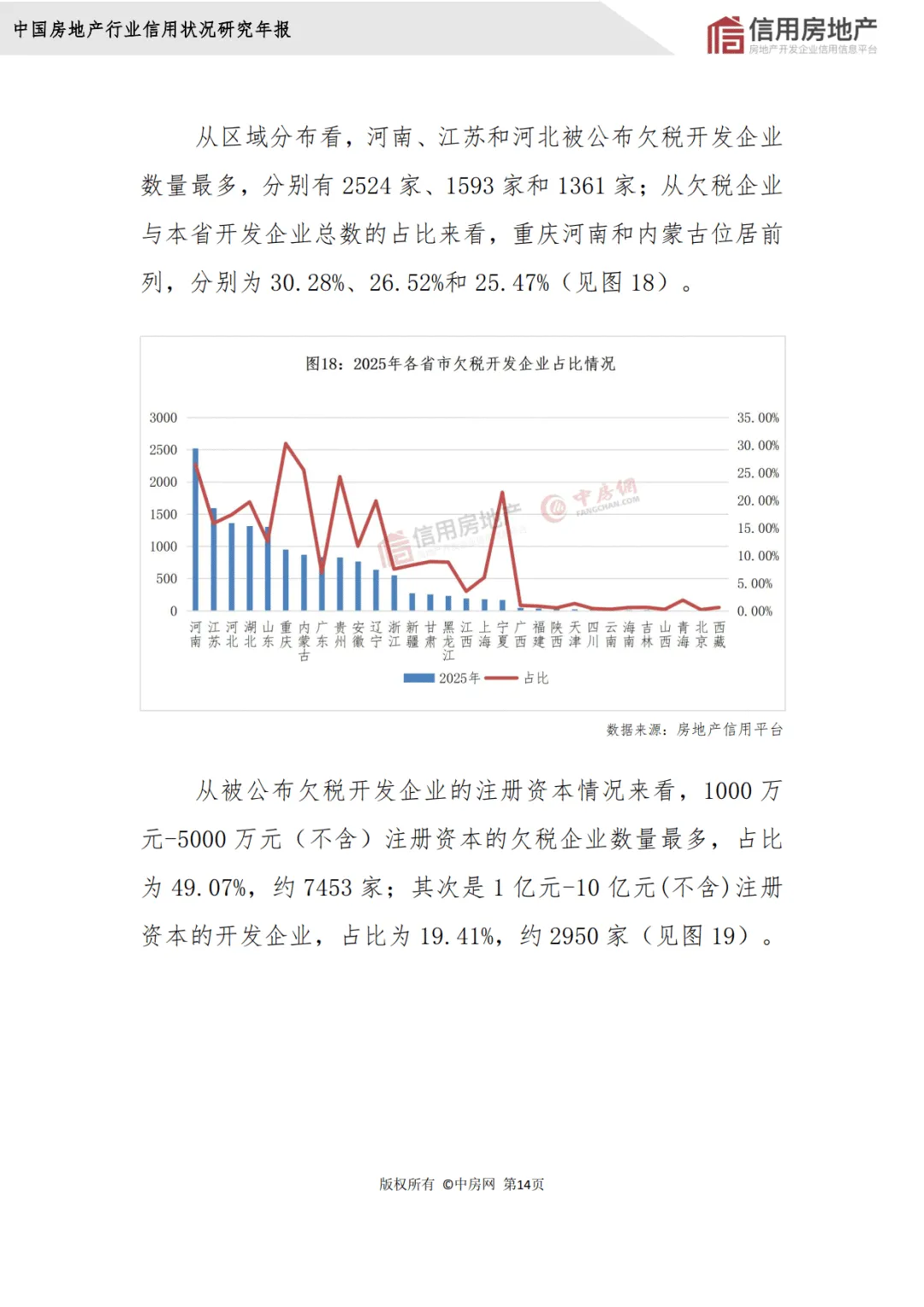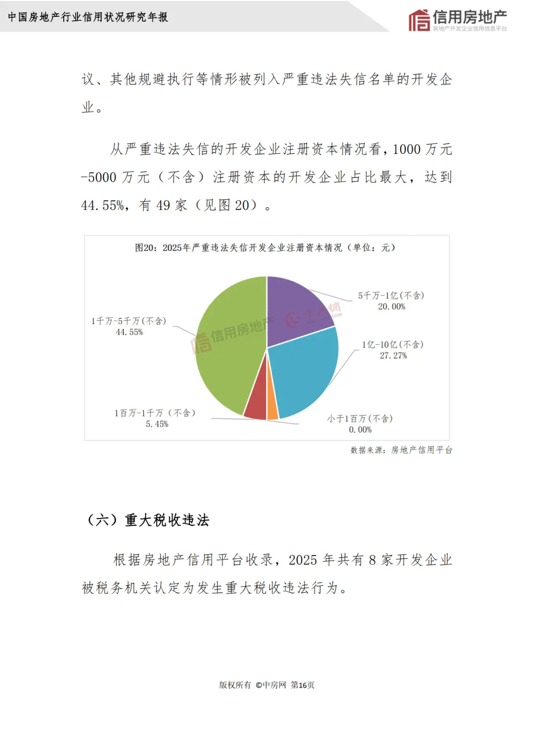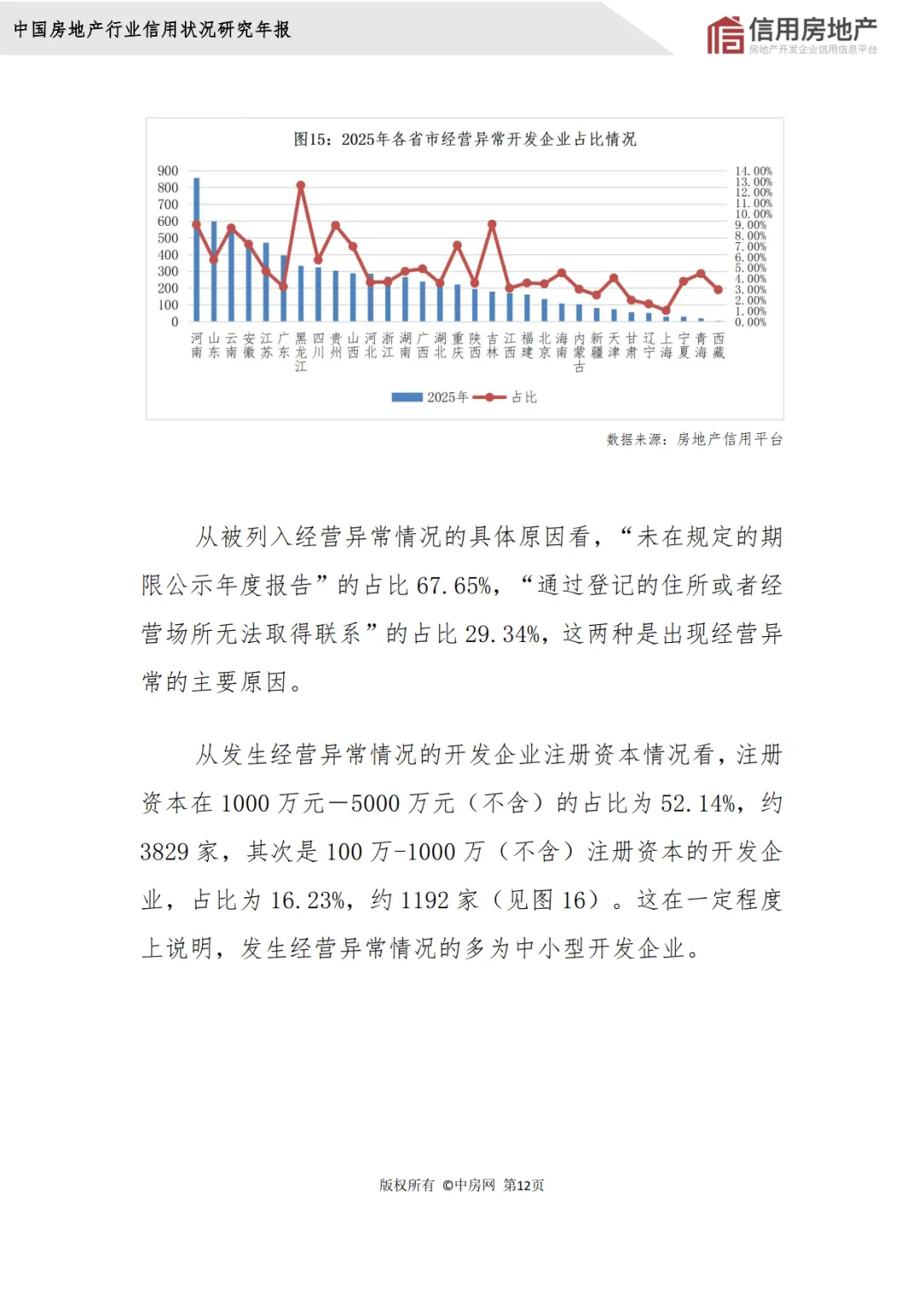 截至 2025 年末,中房网信用平台收录房地产开发企业 149232 家,区域集中于广东、山东、江苏、河南;注册资本以 1000 万 - 5000 万元为主,占比 49.71%;2016-2020 年为企业注册高峰期,行业主体结构以中小规模房企为主。
