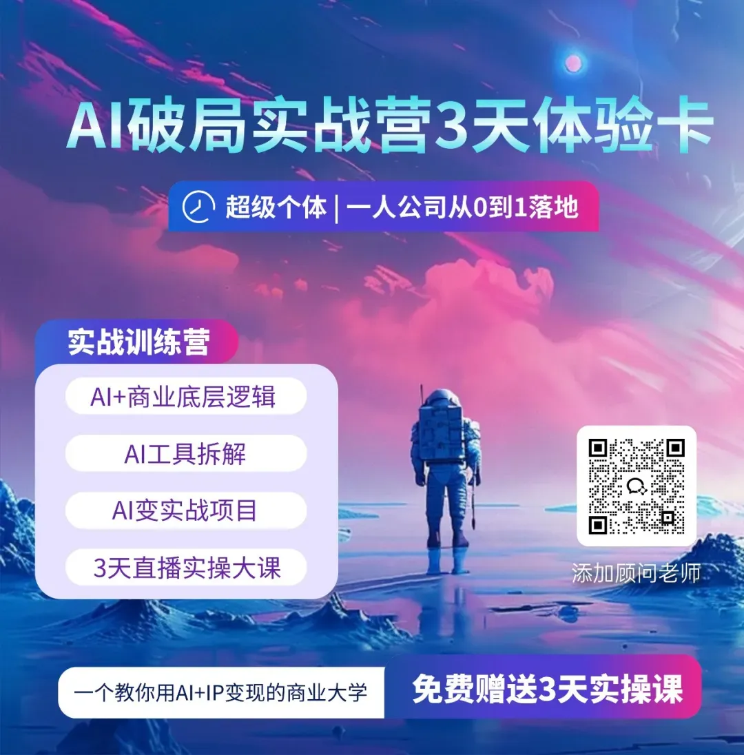 原因很简单:第一,AI工具能力在快速提升,行业从业者自己学会用AI的速度在加快。今天他们需要你教,明年可能自己就会了。第二,大厂迟早会进场,到时候个人玩家的空间会被压缩。第三,先发优势非常明显——谁先在一个行业建立了品牌认知、跑通了服务闭环,谁就是这个行业的“AI服务头部”。后来者想追,要付出10倍的成本。