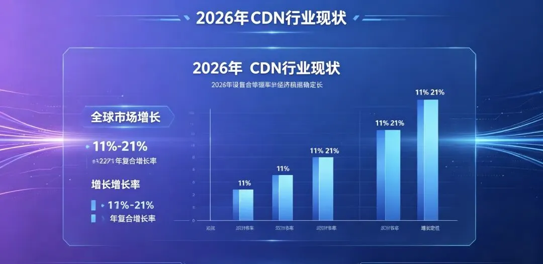 2026 年,CDN 行业正站在 “量价齐升、技术裂变、价值重估” 的关键拐点:全球市场规模持续高增,国内覆盖率缺口显著,AI 与边缘计算深度重构行业价值,价格战落幕转向能力竞争。本文结合最新行业数据与实践,拆解 2026 年 CDN 行业现状、核心痛点与未来趋势,读懂这条藏在所有数字产业背后的 “黄金赛道”。