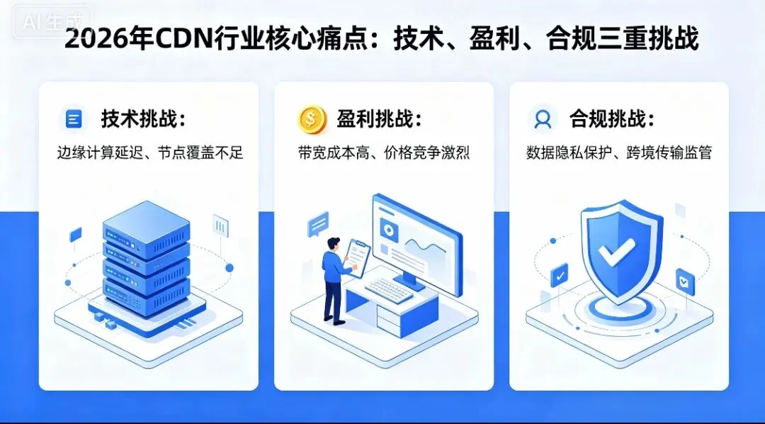 二、2026 年 CDN 行业核心痛点:技术、盈利、合规三重挑战
