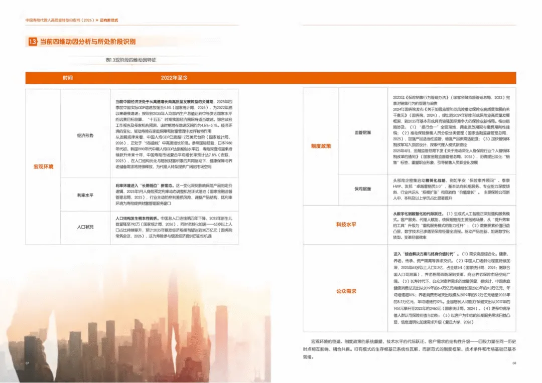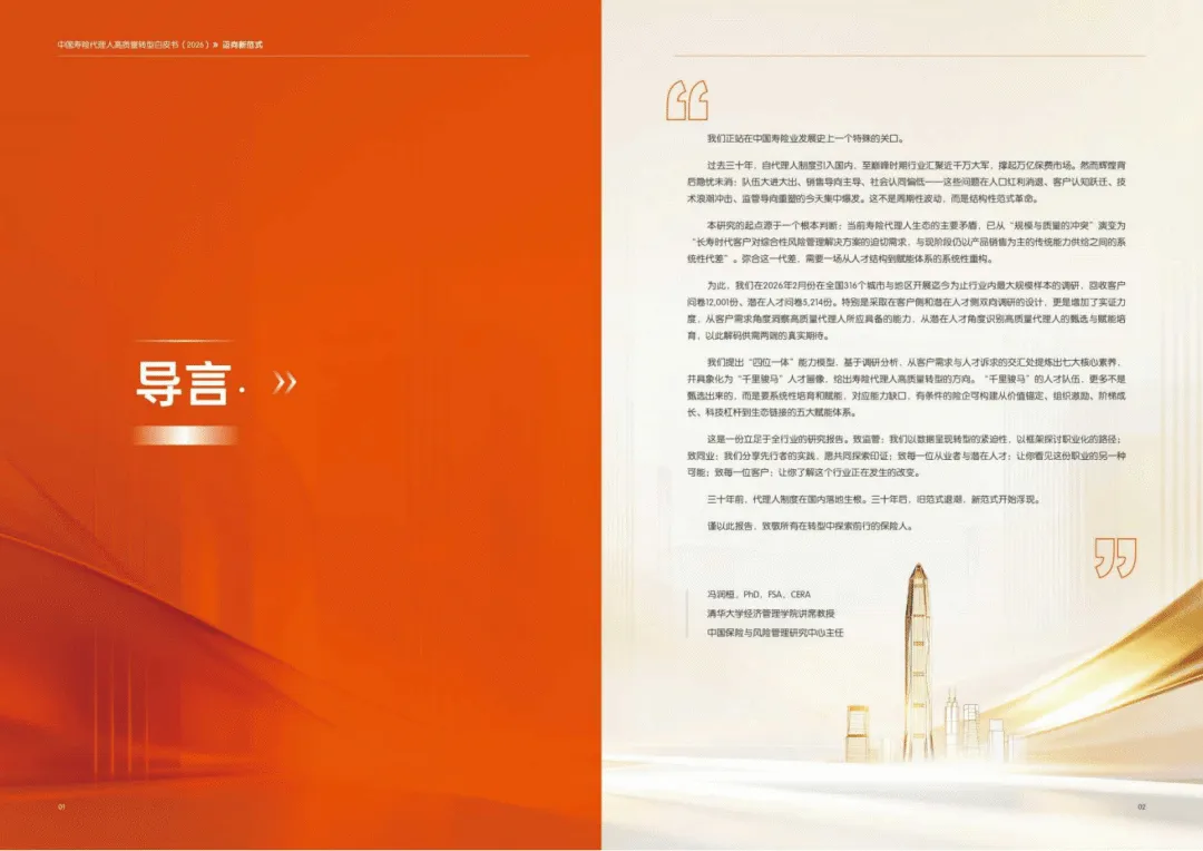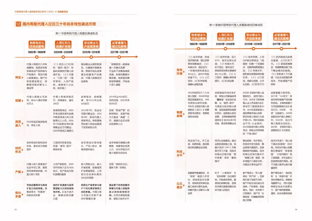 这份《中国寿险代理人高质量转型白皮书(2026)》系统梳理了寿险代理人三十年发展历程,指明行业正从规模扩张转向高质量发展的范式革命,核心是弥合客户综合需求与传统销售能力的代差。
