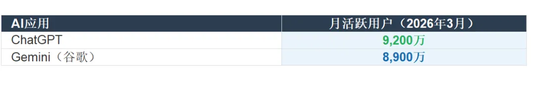 差距只有300万。更值得关注的是,谷歌的Gemini在近期日活跃用户和下载量上增势明显,正在快速追赶。