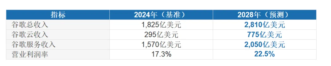 花旗对谷歌未来三年的核心财务预测,给出了一张相对清晰的路线图: