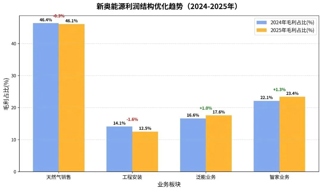 对比2024年与2025年数据,新奥能源毛利结构呈现明显优化特征: