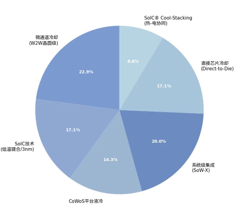 2024年的研究将SoIC技术与台积电3nm制程结合,支持超高带宽HPC应用。该技术展示了液冷与最先进制程节点的协同能力,证明热管理结构可与晶体管微缩同步发展,为摩尔定律的延续提供了热管理基础。