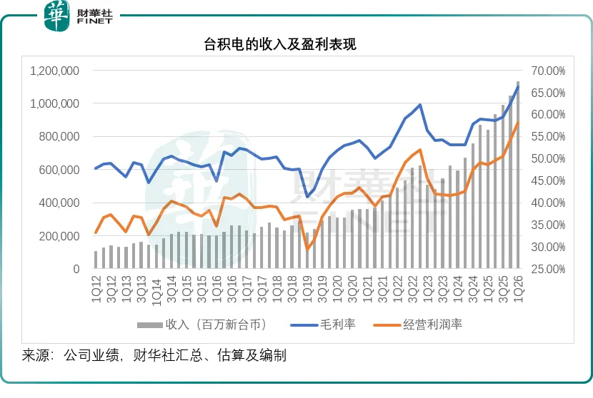 2026年第1季,台积电收入同比增长35.13%,至1.13万亿新台币,再创新高,先进制程的强劲需求推动了收入增长。