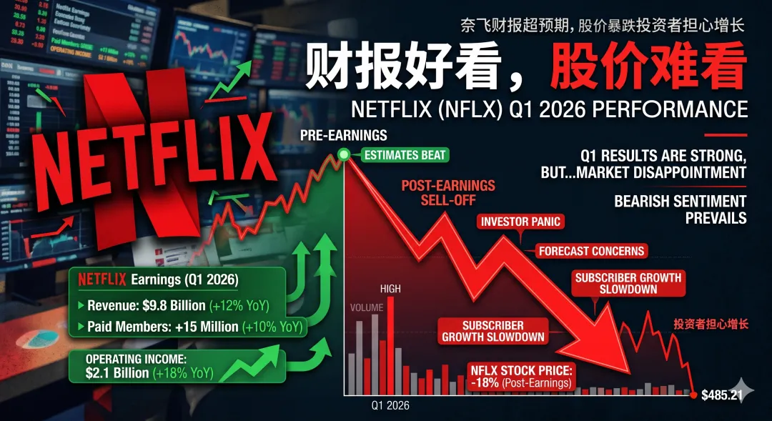 我知道你在想:又是美股财报,奈飞涨跌,跟我有什么关系?因为奈飞这次给市场上的,不只是一份财报,而是一堂很贵的课:奈飞一季度收入122.5亿美元,折合人民币大约880多亿元。按常理说,这成绩够漂亮了吧?每股收益1.23美元,也比市场预期高。注意一下,122 亿是"营收",不是"净赚",净利润达到52.8亿美元,同比接近翻倍。市场从不奖励已经发生的好消息,它只惩罚配不上的期待。你可以把奈飞想成班里那个常年第一的学霸,别人考 80 分,老师夸,学霸考98 分,大家第一反应却是:那2分怎么丢的?下次还能不能继续第一?表面上看,一季报不差,可问题在于,这份成绩单里有一块"看着很香、但不能天天有"的收入。年初它和华纳兄弟探索的并购被Paramount Skydance用更高的报价截胡,按协议,Paramount 向奈飞支付了 28 亿美元的终止费。这笔钱一次性入账,利润当然会好看很多,但市场心里明白:这不是可以复制的日常经营能力。公司预计二季度营收125.7 亿美元,低于市场原先盯着的126.4 亿美元;每股收益指引0.78 美元,也低于预期的0.84 美元。别看差得不算离谱,对普通公司这可能叫"小偏差",对奈飞这种已经被高期待托起来的公司,这就足够让资金先撤一步了。而且别忘了一个关键背景:奈飞在财报前的两个月里,股价已经涨了大约40%,同期纳指才涨7%。这意味着这次超预期的成绩,其实早就被股价"预支"掉了。市场真正等的,是公司顺手把全年指引往上抬一抬,结果奈飞选择按兵不动,继续维持全年营收507–517 亿美元、经营利润率31.5%的老口径。你已经提前把好成绩付了钱,现在公司却不肯再开一张新支票给你,资金当然先撤。说白了,市场不看你昨天多能打,它只看你下个月还能不能继续赢。就在财报一起出来的,还有另一条更有情绪张力的消息:干了29 年的联合创始人兼董事长Reed Hastings,不再寻求连任,将在6月退出董事会。顺带一个细节:按SEC披露,他近期通过10b5-1预设计划已经卖出约42 万股、约 4,020 万美元的奈飞股票。10b5-1本身是合规的、预先安排的减持,不是临时出逃,但和"退出董事会"叠加在一起看,就是一个很清晰的信号——这位创始人正在有节奏地淡出一线治理角色。但我倒觉得,真正值得盯的,不是“他走了”这件事本身,而是他走了以后,市场会怎么重新给这家公司定价。因为创始人退场,往往意味着一家公司要从“故事驱动”切到“执行驱动”。以前大家愿意给你更高溢价,是相信创始人的眼光、气场和下一步传奇。广告业务到底能不能撑起来?涨价还能涨多久?内容投入会不会越来越贵?广告业务今年目标做到30亿美元,比去年翻倍;直播、体育内容、游戏也都在加码。这说明它不是没招了,而是过去那套“靠订阅一路往上冲”的打法,已经没法让所有人自动买单了。今天最脆弱的,不是差公司,而是那些被所有人默认“不能失手”的好公司。你看很多中国互联网公司、消费公司,甚至你身边一些明星创业公司,也都走过这条路:前半场靠高增长讲故事,后半场靠现金流、组织力、盈利质量挨个过筛。前半场市场问的是“你能不能做大”,后半场问的是“你还能不能一直这么好”。所以对普通读者来说,这件事最有价值的,不是去猜大家看好的高预期公司明天涨还是跌,而是记住一个判断框架:- 先看这份业绩里有没有一次性收益。看上去很猛,不等于可持续。