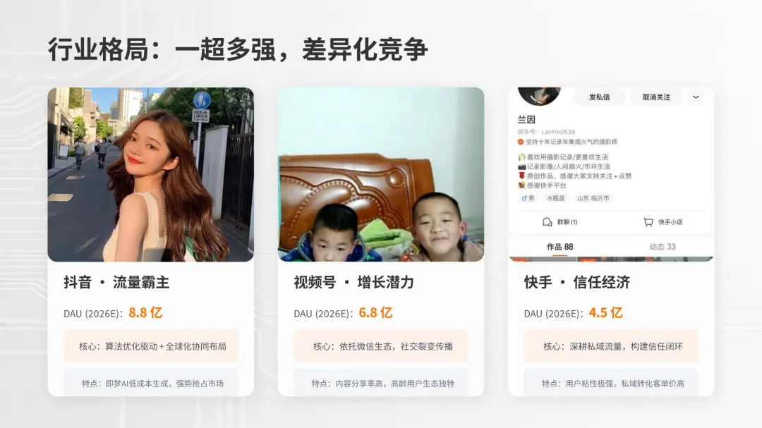 本报告基于2026年最新行业数据,全面分析中国短视频行业的发展阶段、现状特征及全球发展趋势 数据来源:CNNIC、QuestMobile、易观千帆、北京研精毕智等机构发布的2025-2026年行业报告。