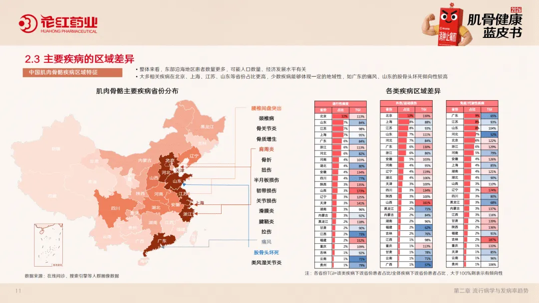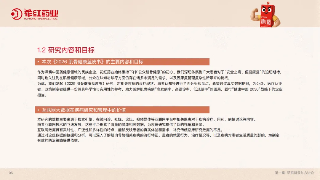 这份由花红药业发布的《2026肌骨健康蓝皮书》,基于互联网大数据与多维度研究方法,全面剖析了我国肌肉骨骼疾病的流行现状、人群特征、诊疗痛点及行业发展趋势,为肌骨健康管理提供了科学参考。