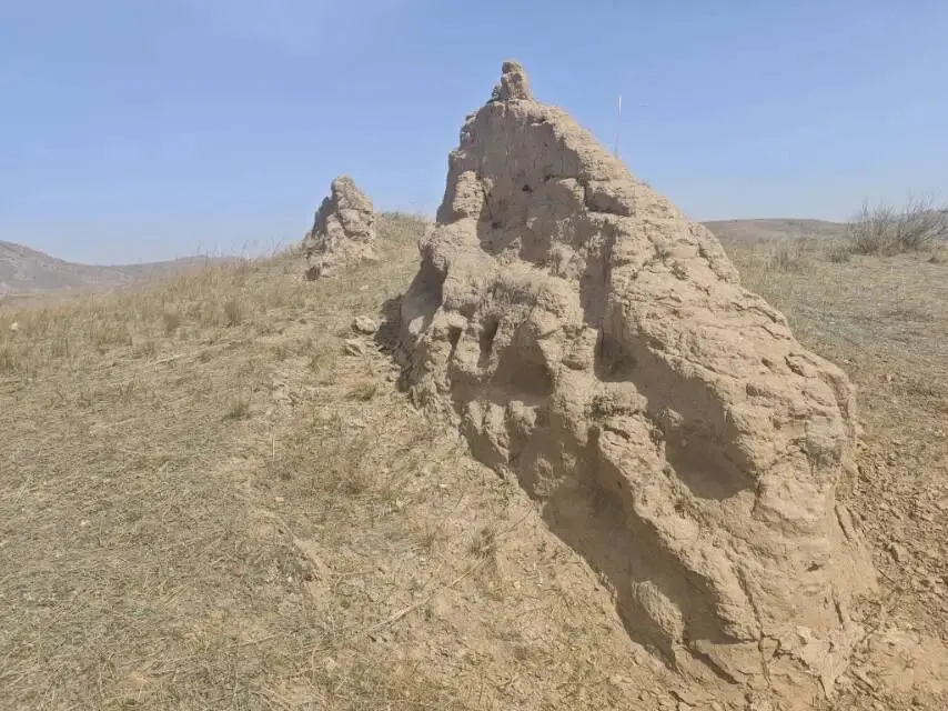2. 烽火台(烟墩):分布于墙体两侧及制高点,共50余座,方形或圆形夯土台,残高3—8米,用于传递军情 。