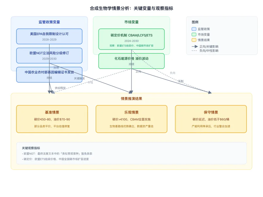 合成生物学的长期价值,很大程度上取决于它能否在监管框架内实现'基因修饰生物'(GMO)的安全、可控、可追踪释放,以及在碳中和目标下替代化石路线的经济性验证。这两个变量,一个是制度约束,一个是市场激励,共同构成了产业的情景边界。
