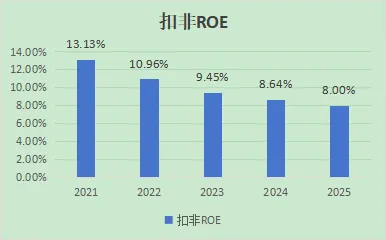 相对于现金等价物,有息负债占比极低!虽说安全性没问题,但也意味着无法通过加杠杆来放大ROE,这也是ROE偏低的结构性原因之一。而且,对于远超经营所需的现金等价物,如果没有高于目前扣非ROE的收益率,就是导致扣非ROE下降的另外一项重要因素。