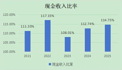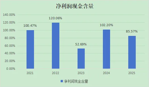 现金收入保障没问题,都能保持在100%以上,企业应收账款一直很少也侧面支持了这一点。